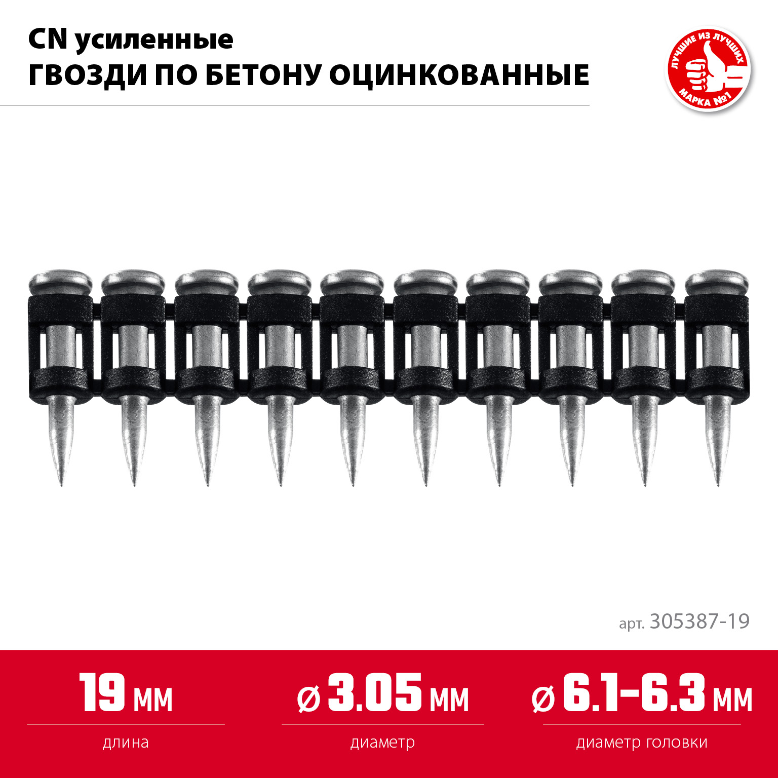ЗУБР CN усиленные 19 х 3.05 мм, гвозди по бетону оцинкованные, 1000 шт (305387-19)