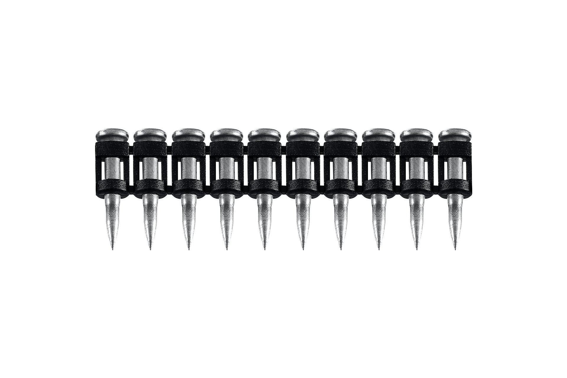 Усиленные гвозди по бетону соединены в кассету и забиваются при помощи газового или пневматического гвоздезабивного пистолета (нейлера). Кованый наконечник пулевидной формы облегчает вхождение в высокопрочные материалы.