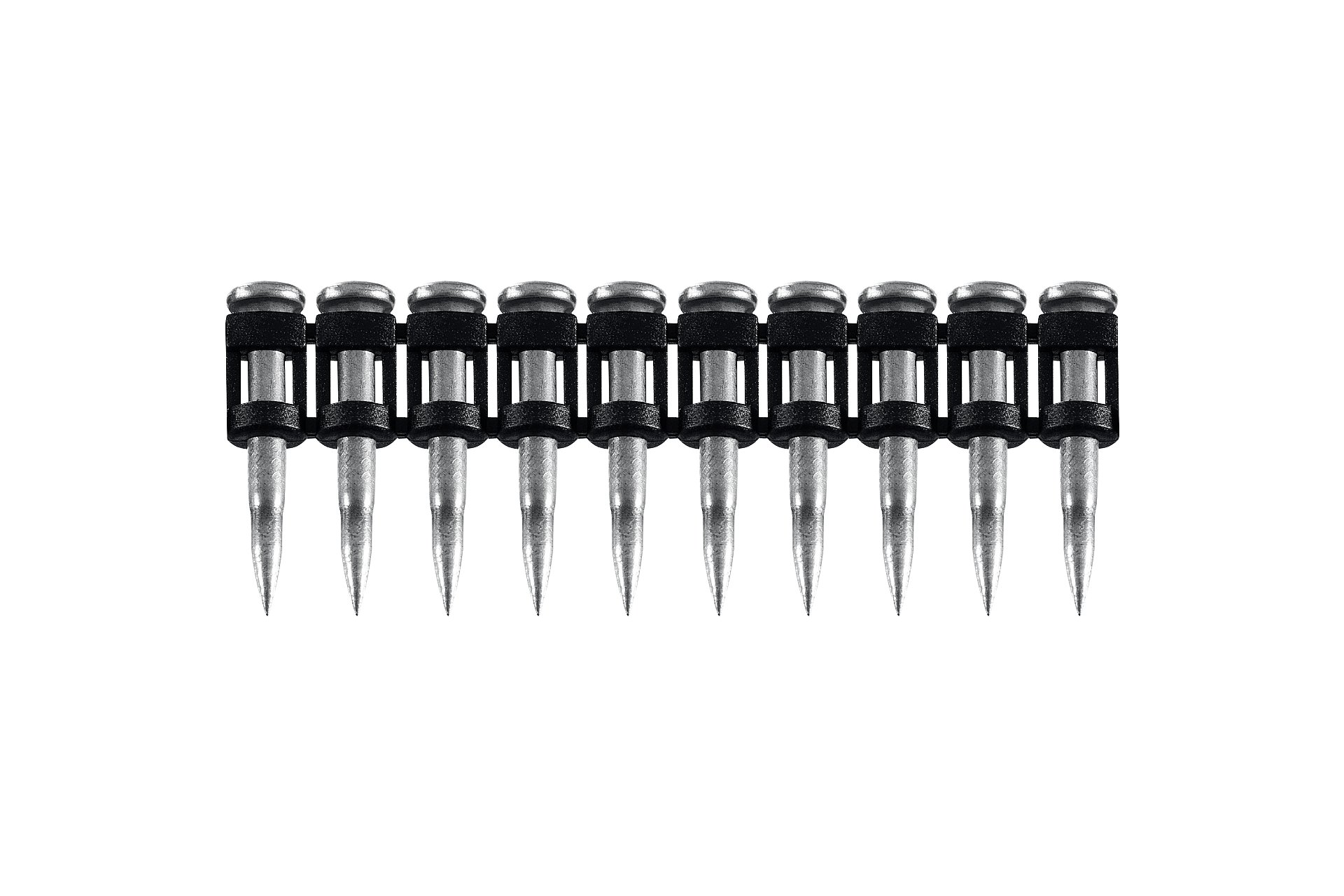 Усиленные гвозди по бетону соединены в кассету и забиваются при помощи газового или пневматического гвоздезабивного пистолета (нейлера). Кованый наконечник пулевидной формы облегчает вхождение в высокопрочные материалы.
