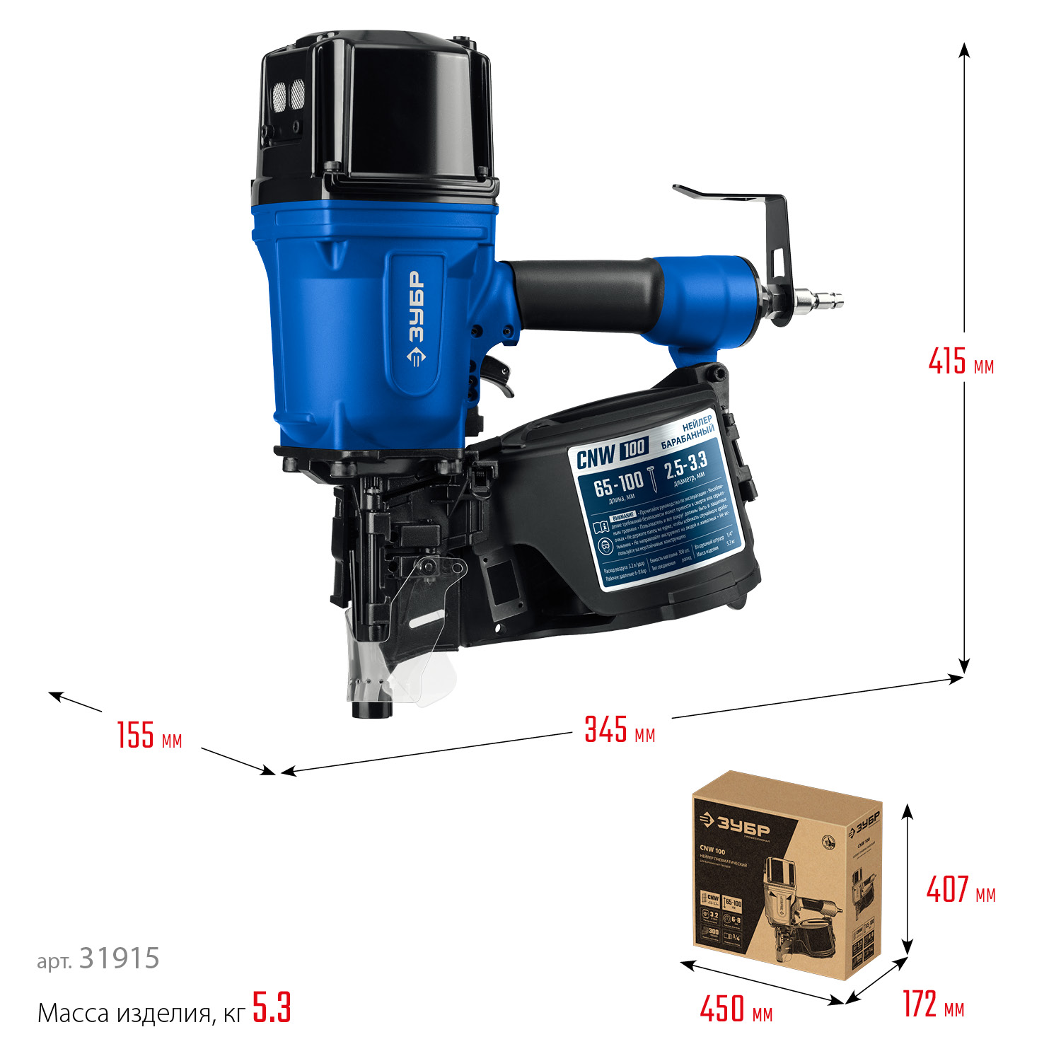 Нейлер пневмоинструмент предназначен для производства паллет (поддонов) и других изделий из дерева, таких как тара, ящики и упаковка с гвоздями длиной 65-100мм барабанного типа.