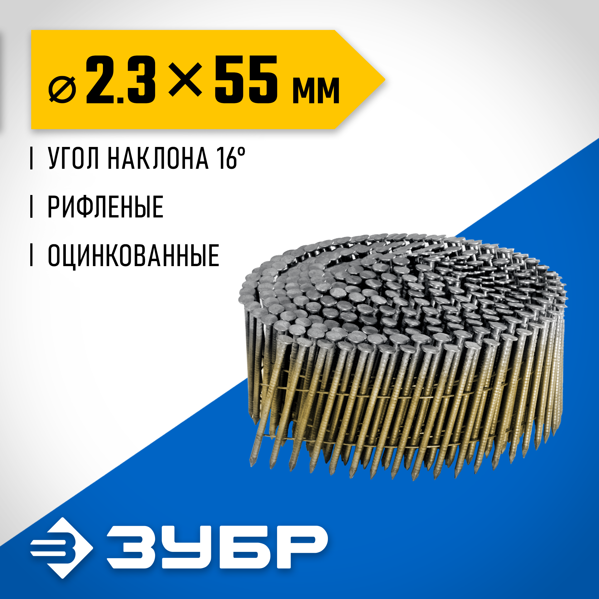Для сборки деревянных конструкций, крепления тонколистового металла до 0.9 мм. В каркасном домостроении используются для сборки каркаса дома и установки черновых полов. Монтаж производится при помощи гвоздезабивного пистолета (нейлера) ЗУБР CNW-57 (арт. 31910), ЗУБР CNW-70 (арт. 31912), ЗУБР CNW-90 (арт. 31914) или аналогичного, рассчитанного на работу с барабанными гвоздями с углом наклона 16 град.
