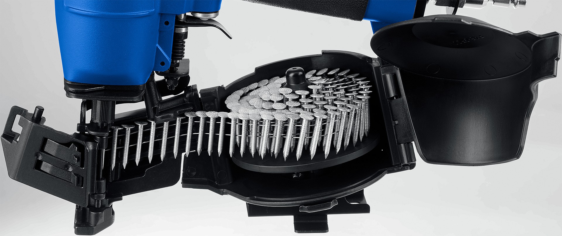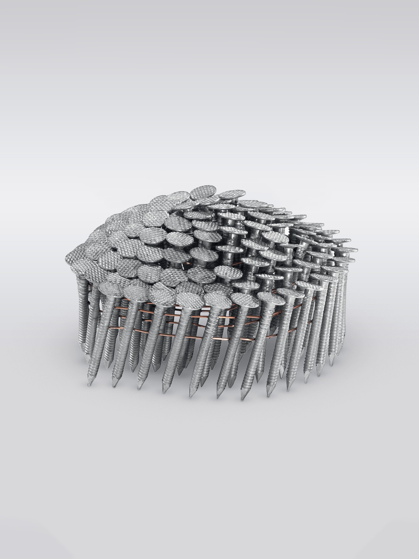 Барабанные гвозди соединены в обойму под углом 16° и забиваются при помощи гвоздезабивного пистолета (нейлера). Большая головка гвоздей оптимально подходит для монтажа листовых кровельных материалов. Использование нейлера обеспечивает высокую скорость монтажа и удобство в работе.
