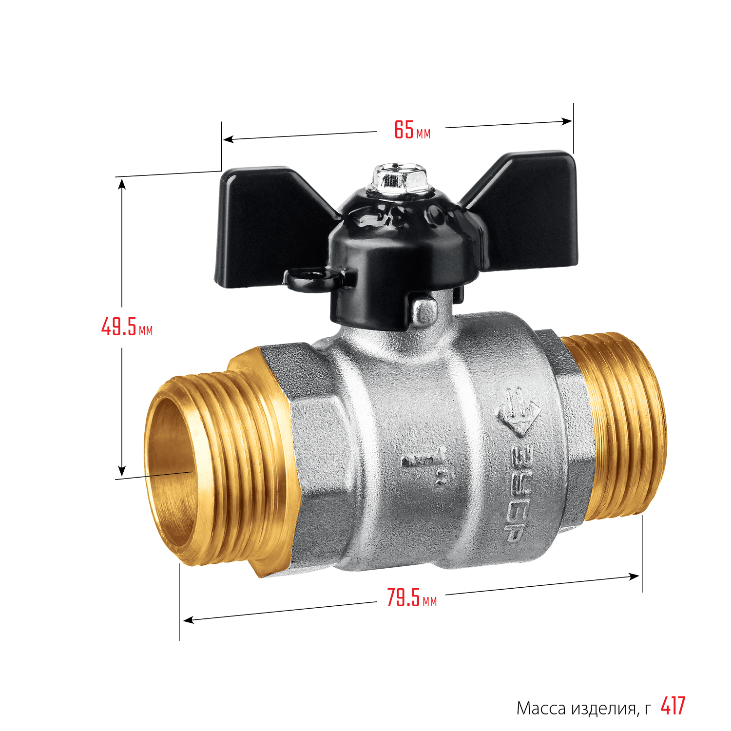 ЗУБР d 1″, ручка ″бабочка″, ″папа-папа″, полнопроходной шаровой кран (51327-1)