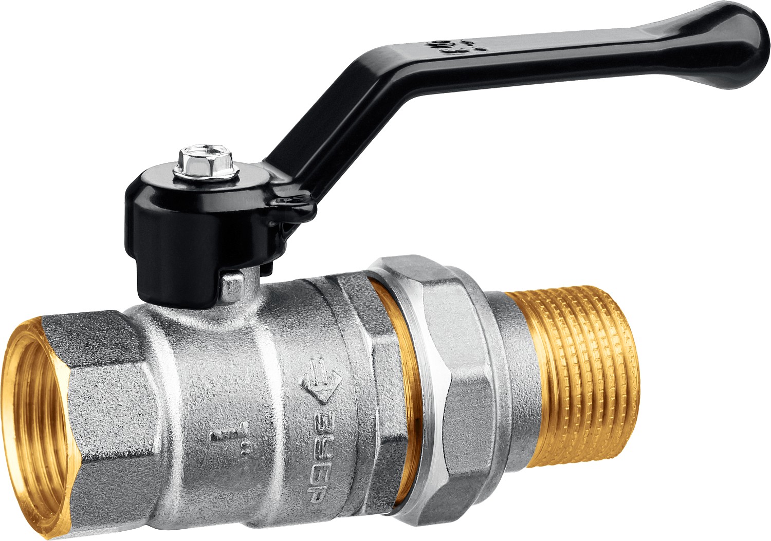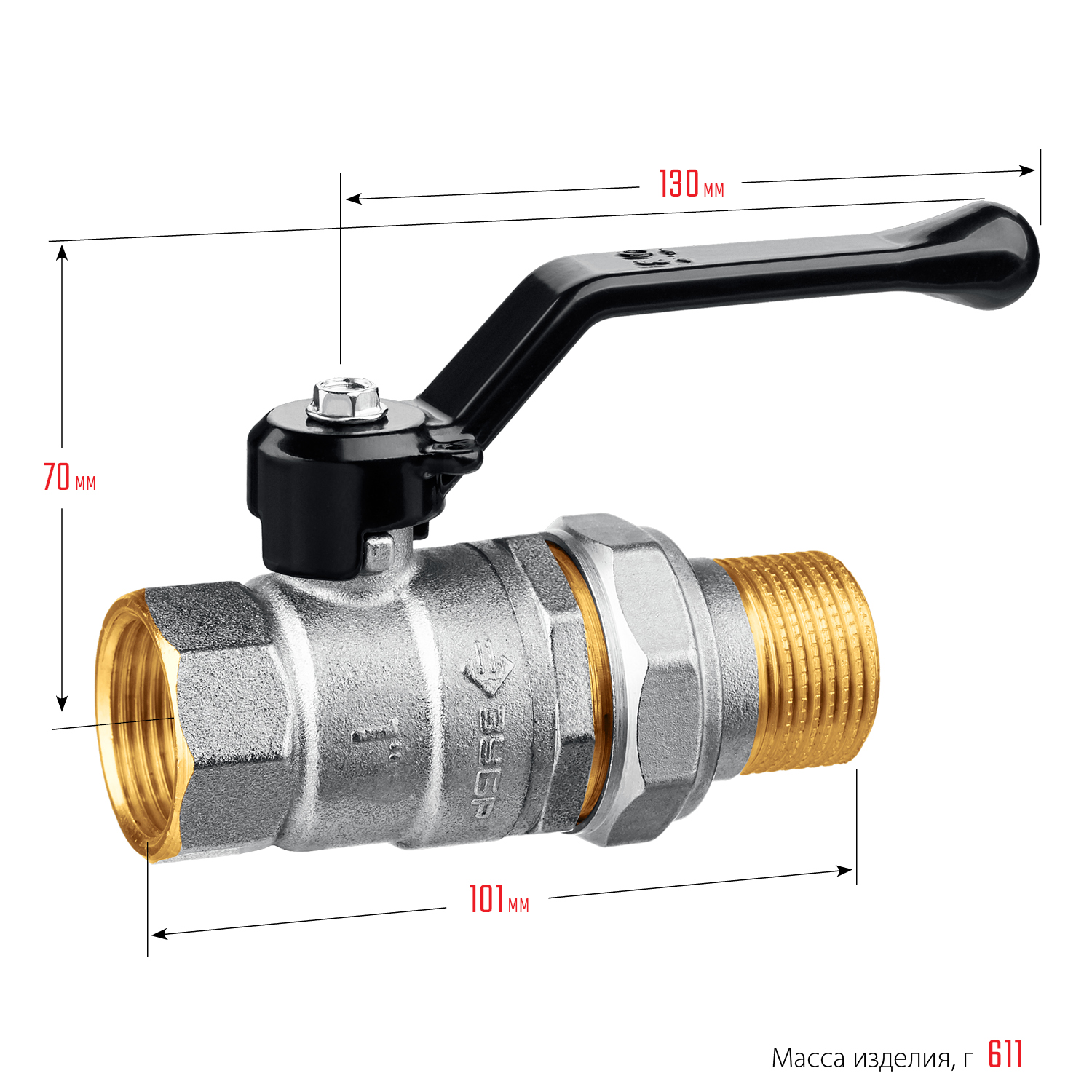 ЗУБР d 1″, ручка-рычаг, ″мама-папа″, полнопроходной шаровой кран с накидной гайкой (51320-1)