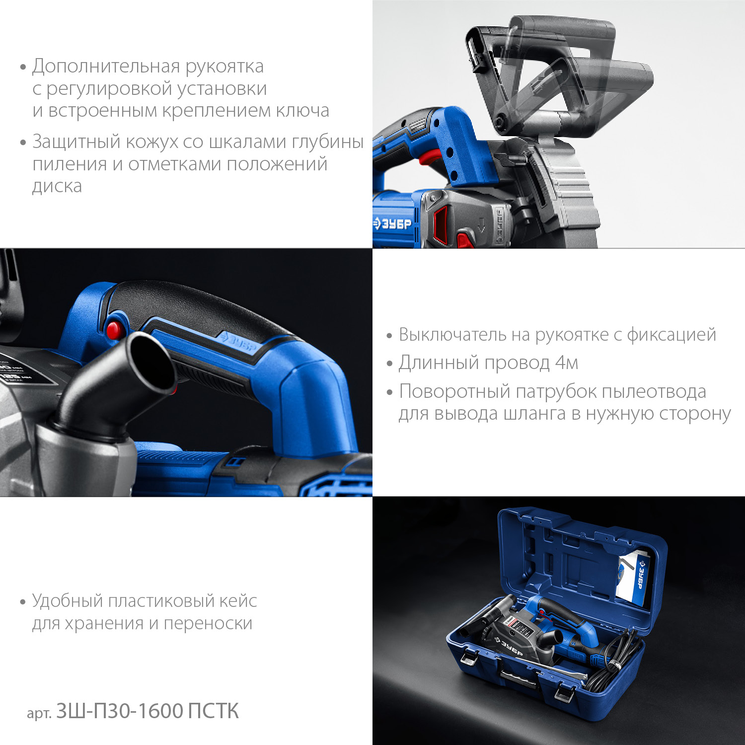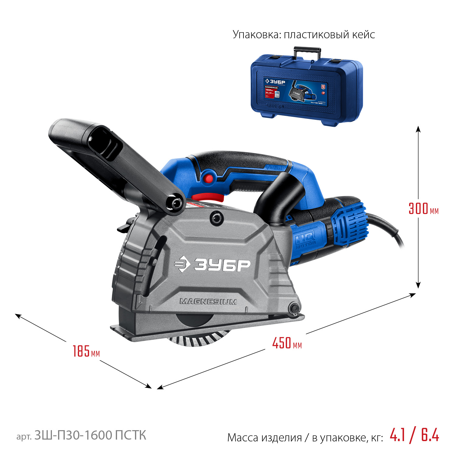 Профессиональный штроборез ЗУБР для выполнения штроб глубиной до 30 мм в легких бетонах. Расширенная (по сравнению с ЗШ-П30-1600 ПСТ) комплектация включает удобный кейс для хранения и переноски. Легкость и компактность позволяют длительно держать его на весу при работе на вертикальных поверхностях