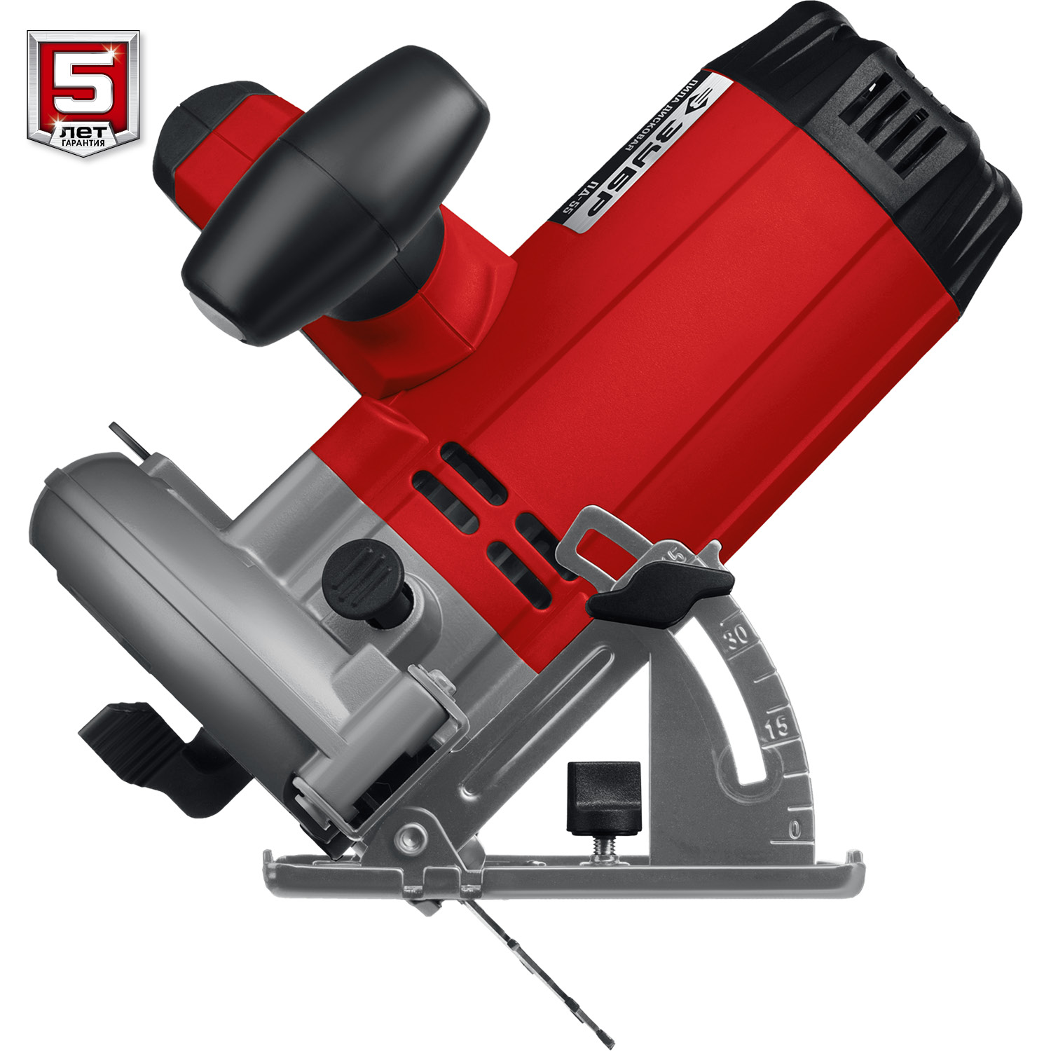 - Бесступенчатая регулировка глубины и угла пиления для точных работ