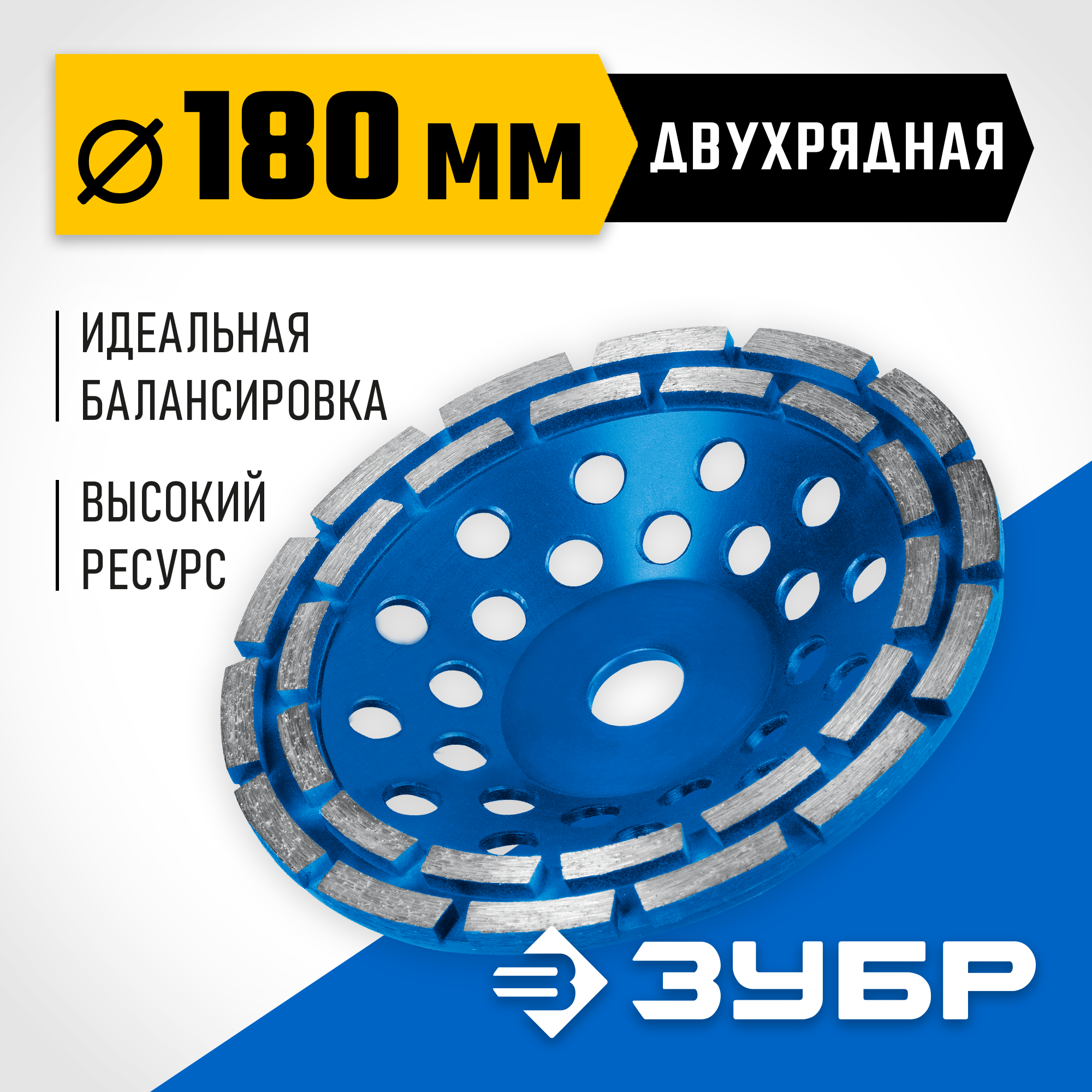 ЗУБР d 180 мм, двухрядная алмазная шлифовальная чашка, Профессионал (33372-180)