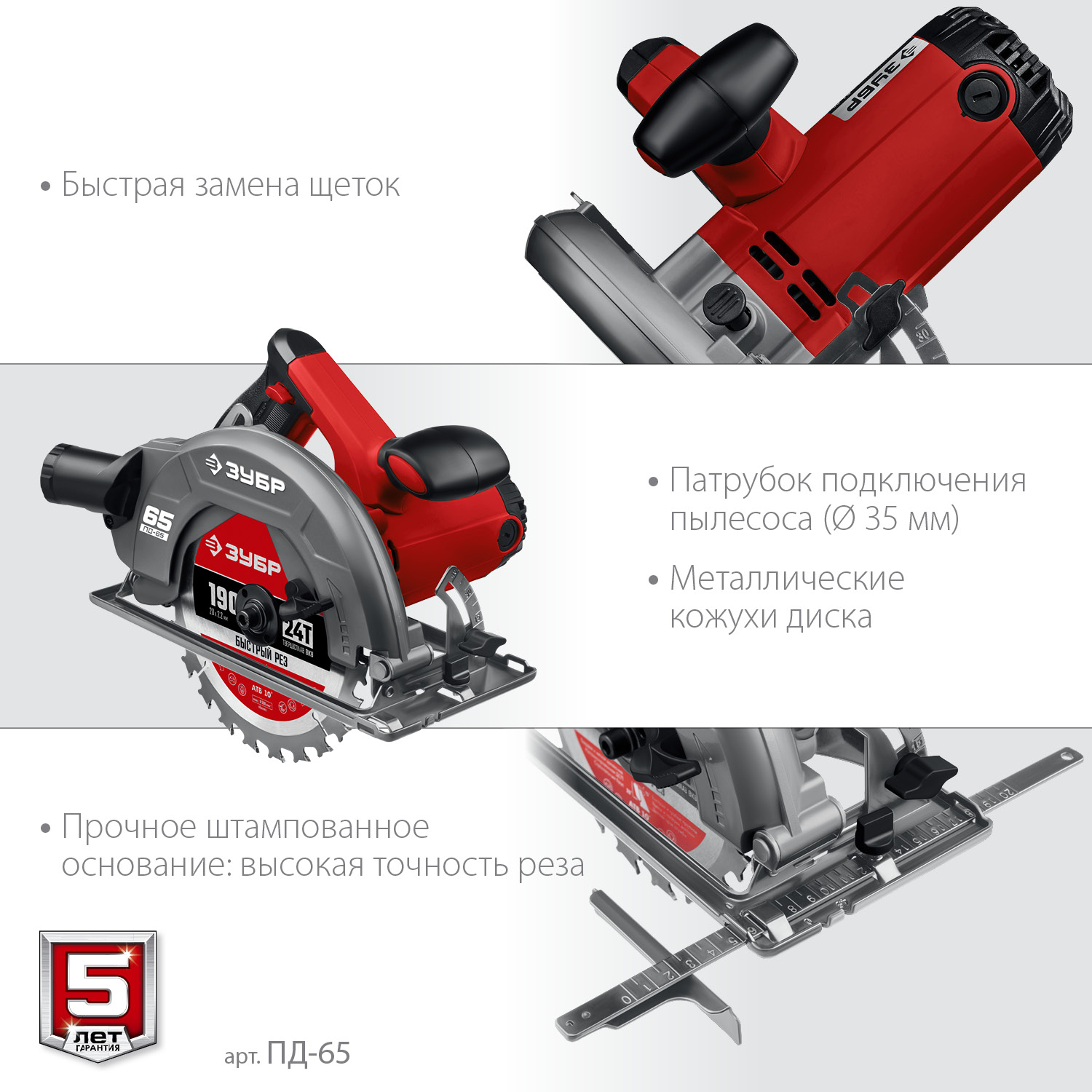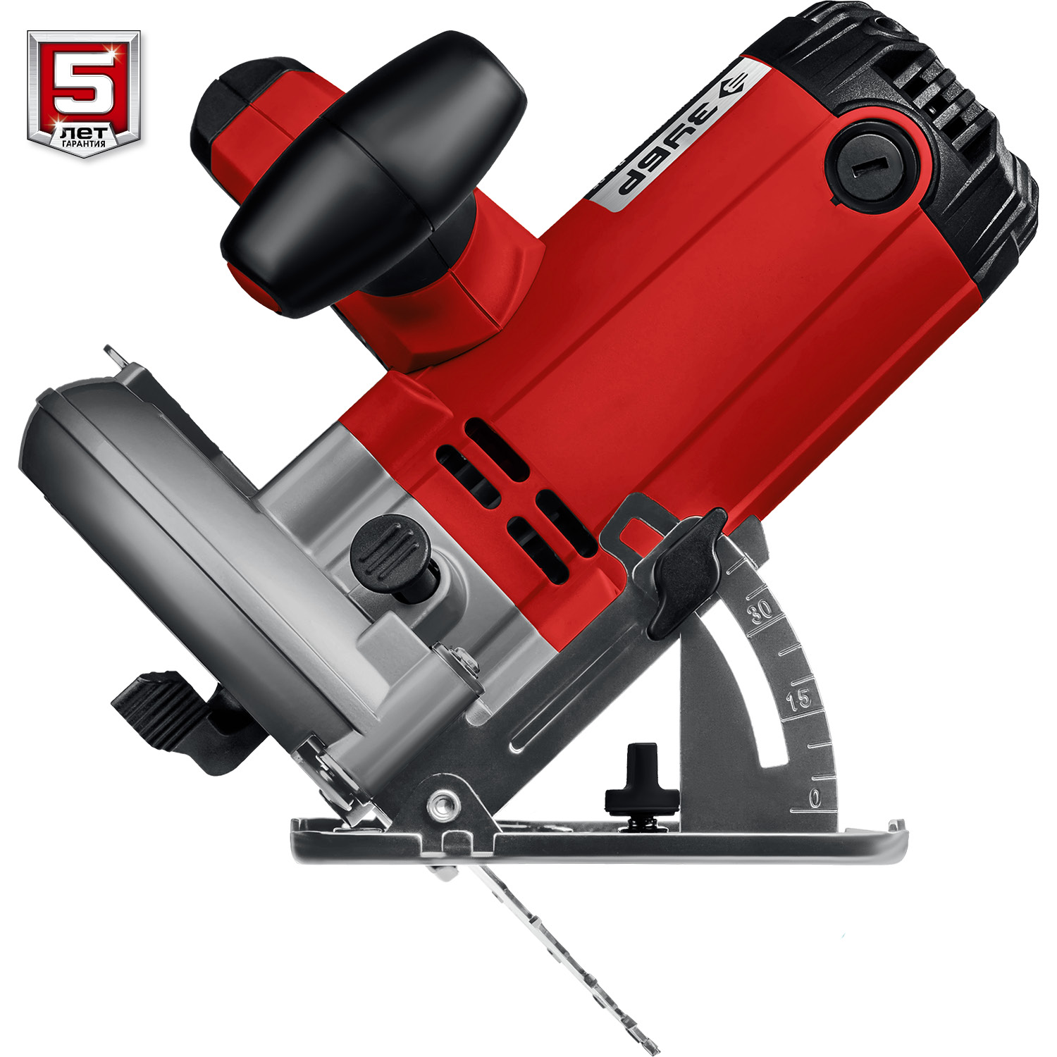 - Бесступенчатая регулировка глубины и угла пиления для точных работ