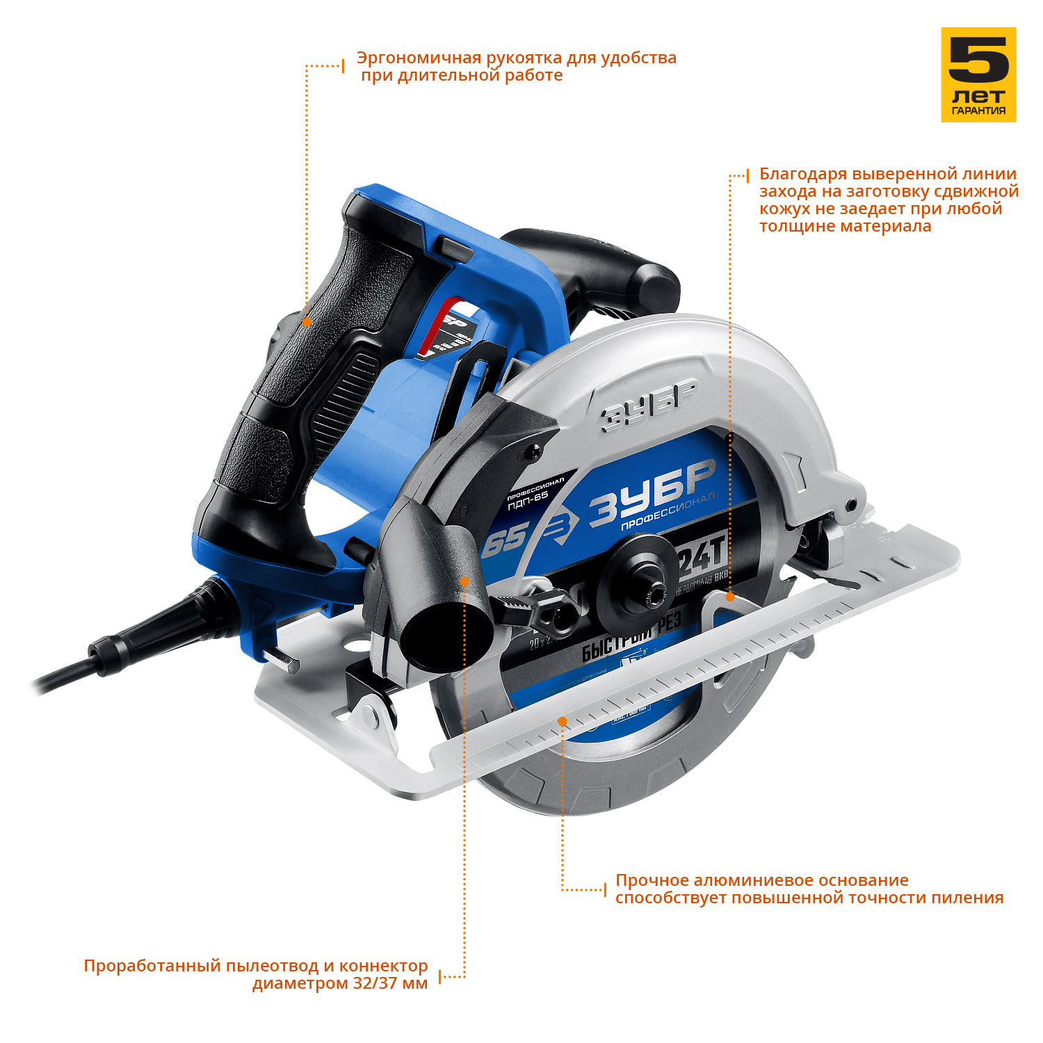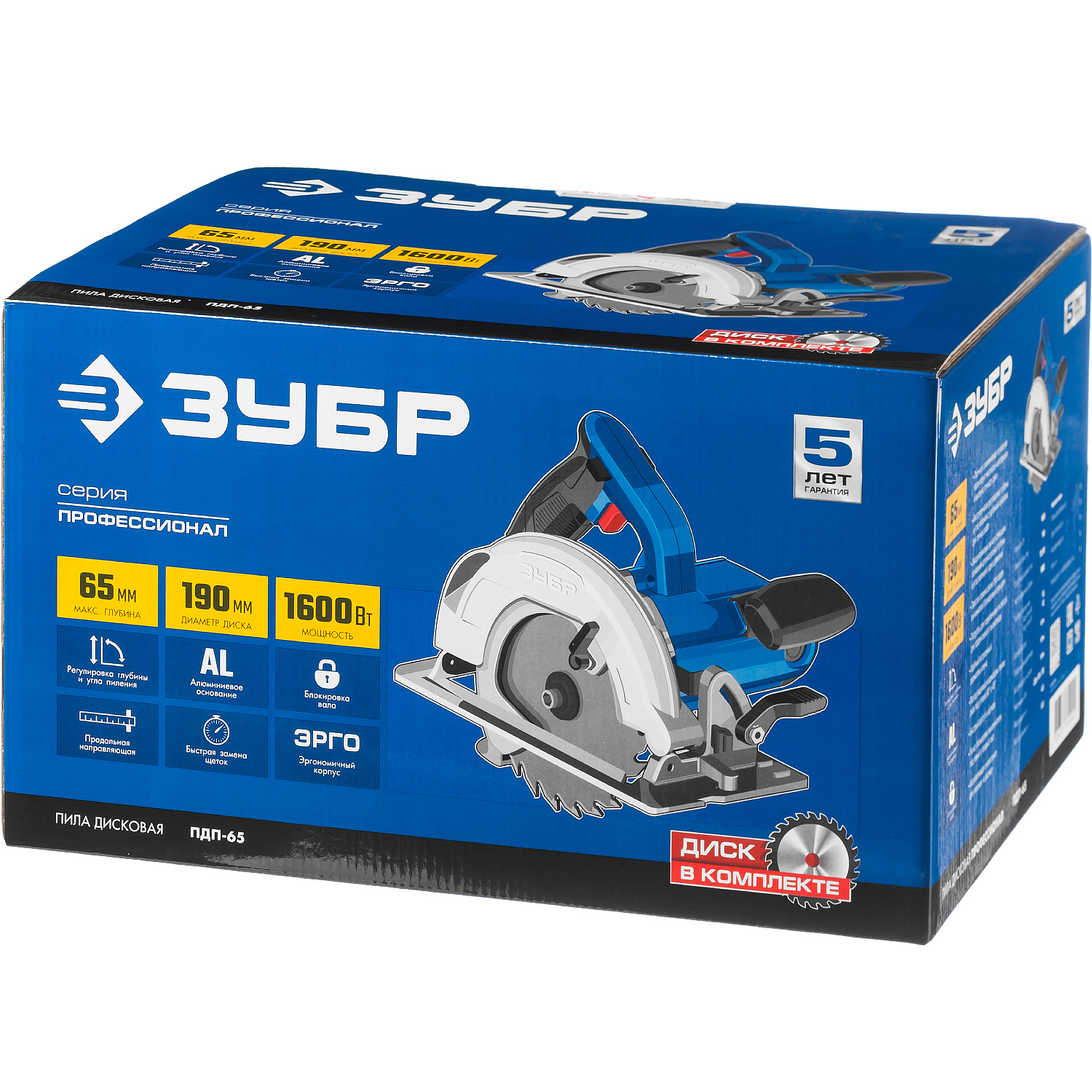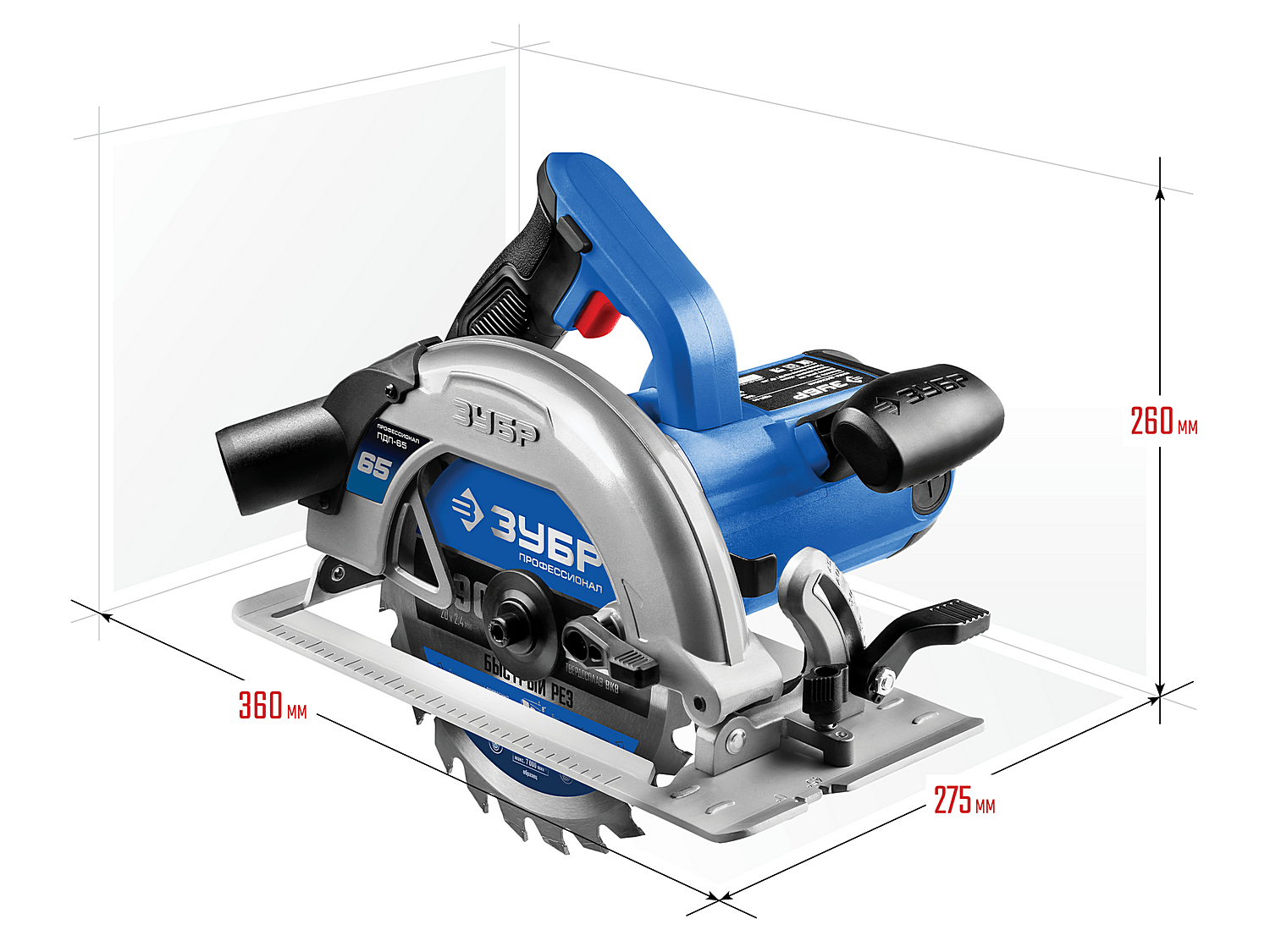 Циркулярная пила для всех видов распиловочных работ в серии профессионального инструмента ЗУБР. Максимальная глубина пиления 65 мм позволяет пилить все виды фанеры, любые листовые материалы, а также большинство типоразмеров досок. Жесткость конструкции обеспечивает точность пиления, а удобные рычаги фиксации выбранных настроек и оптимальная эргономика рукояток помогают работать быстрее и комфортнее