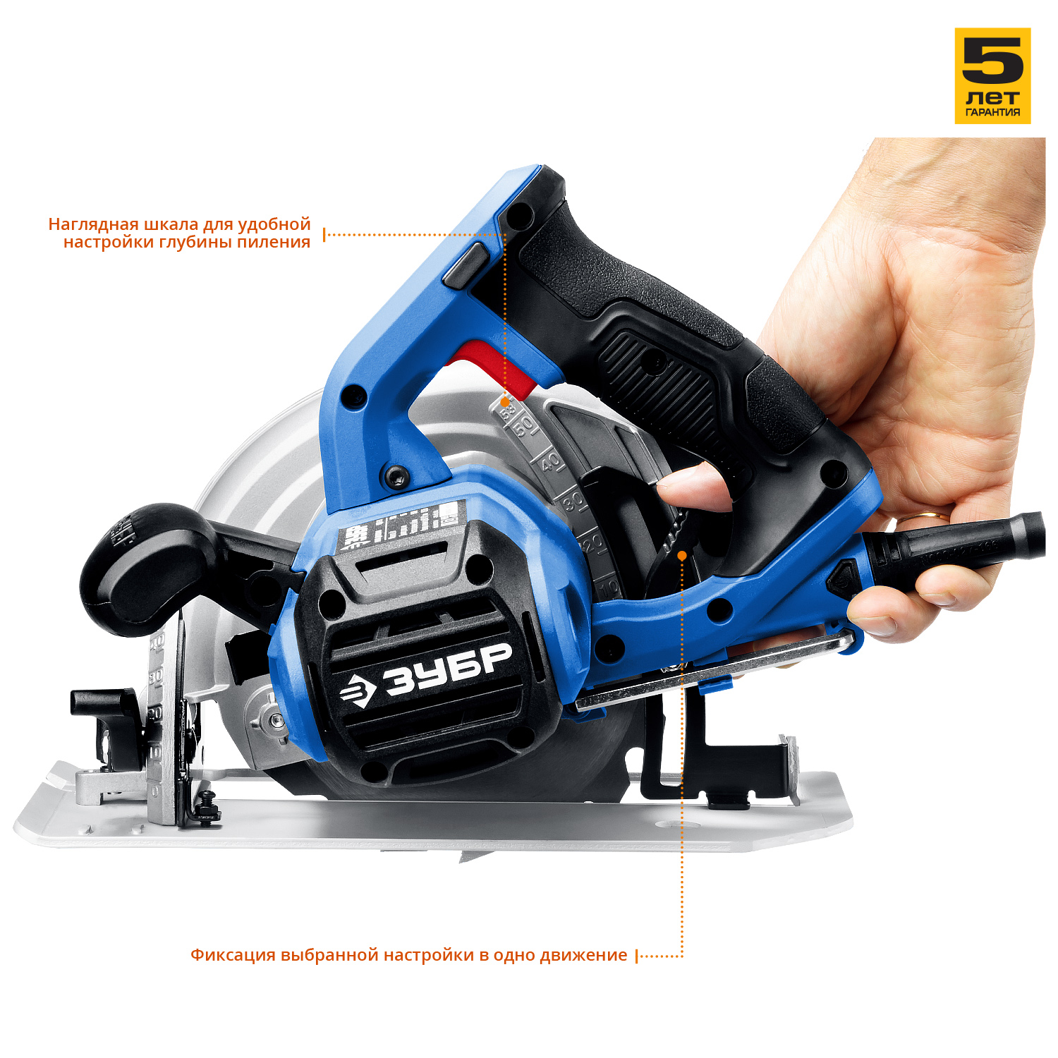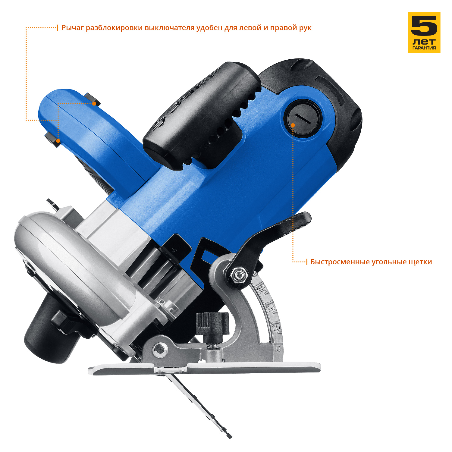 - Бесступенчатая регулировка глубины и угла пиления с удобными шкалами для точных работ