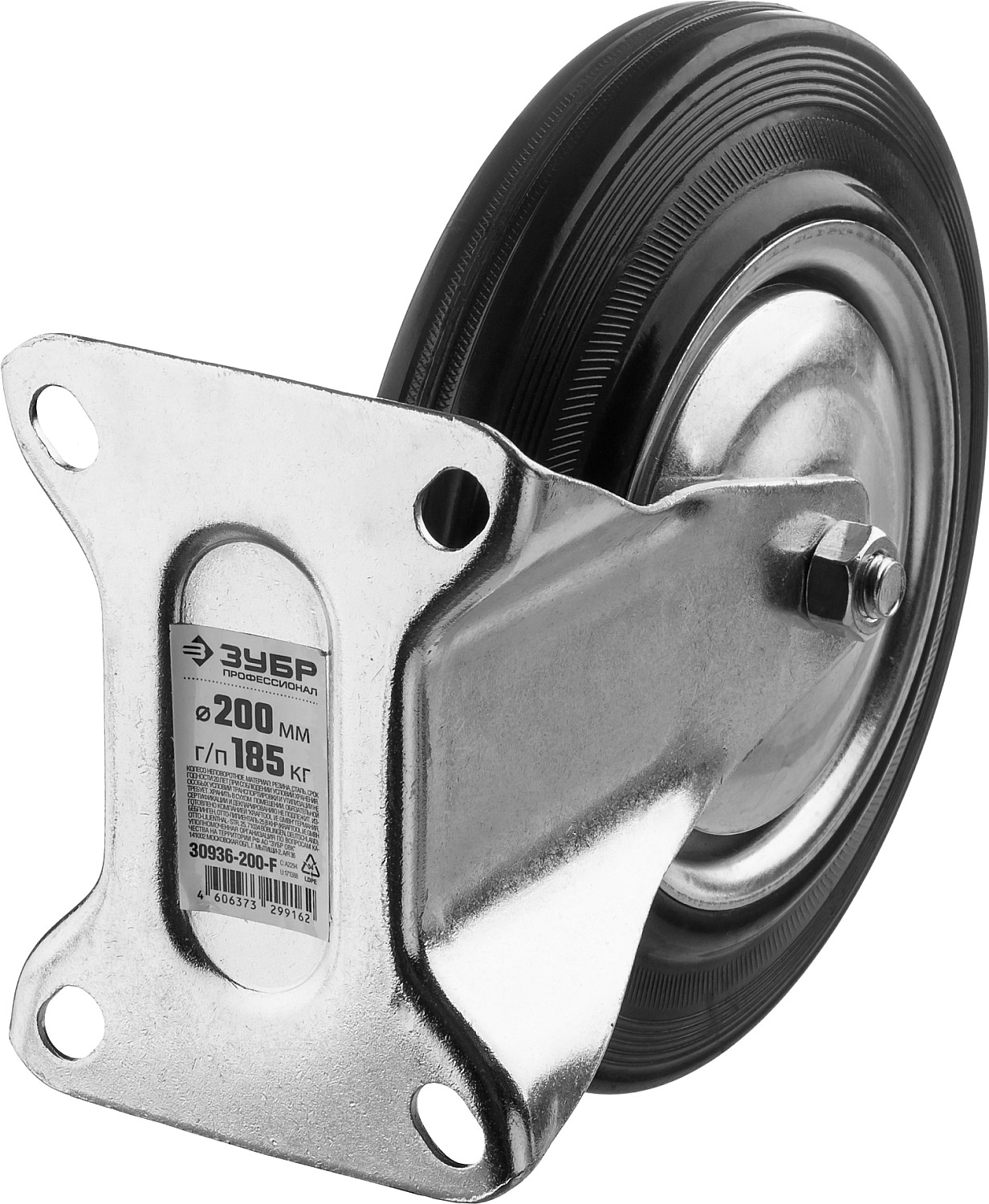ЗУБР d 200 мм, г/п 185 кг, игольчатый подшипник, резина/металл, неповоротное колесо, Профессионал (30936-200-F)