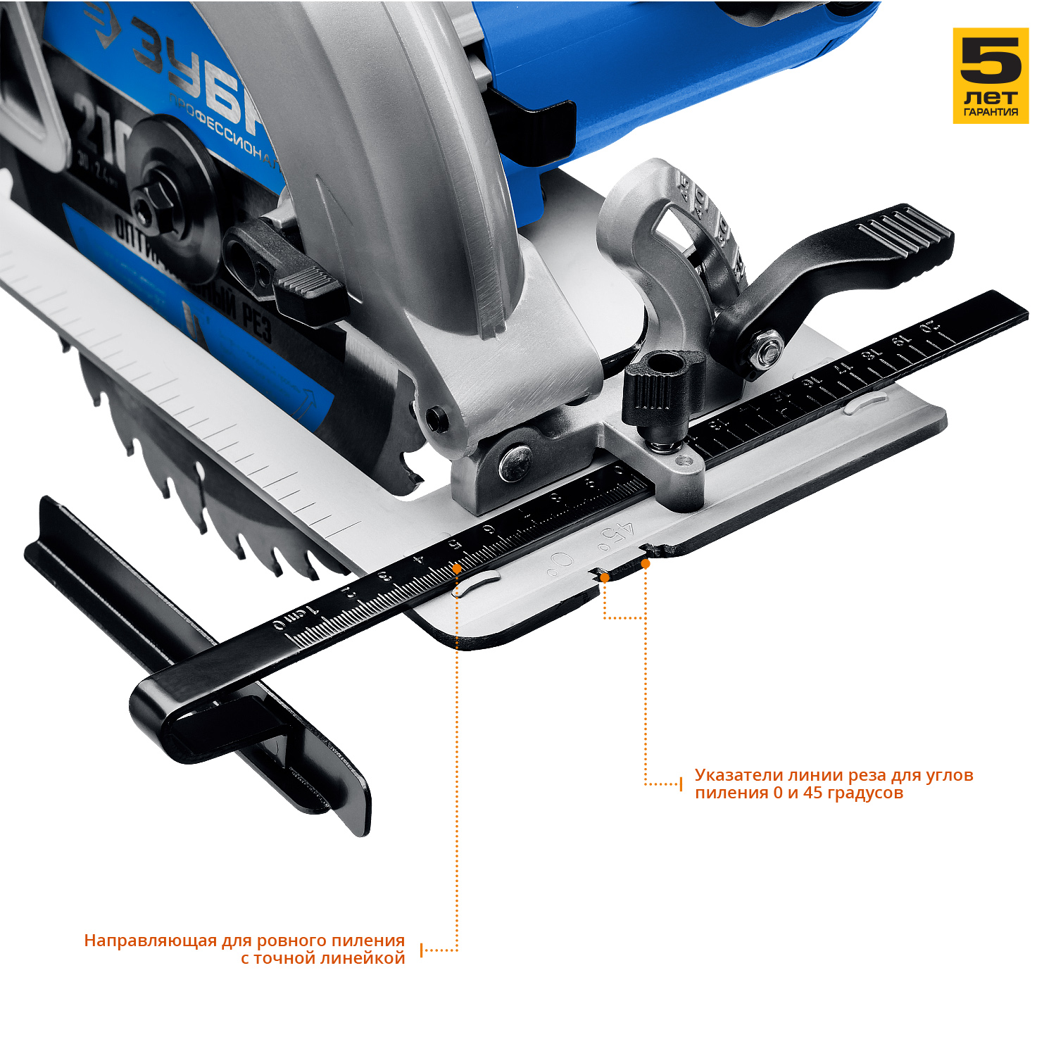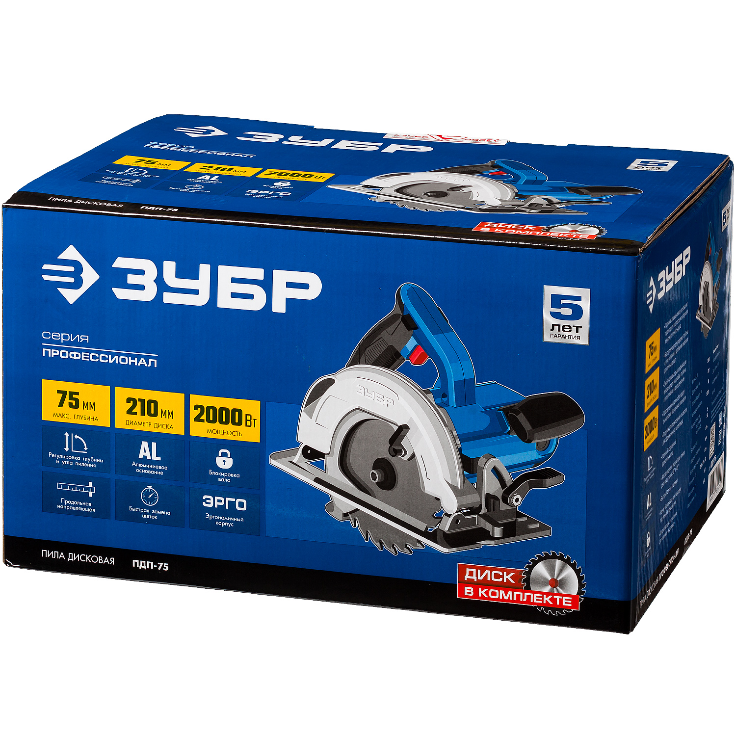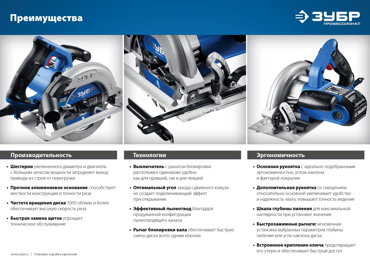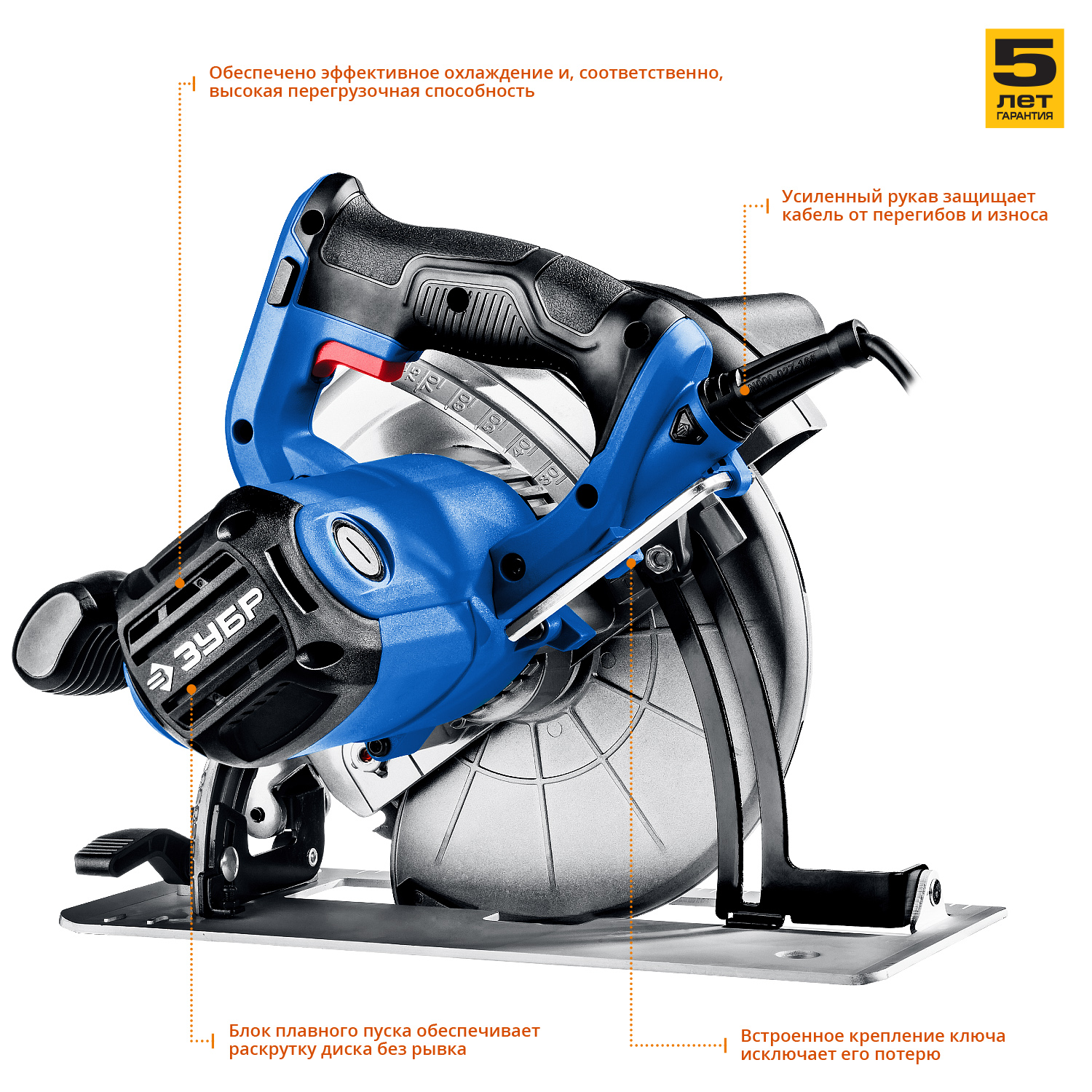 Циркулярная пила для всех видов распиловочных работ в серии профессионального инструмента ЗУБР. Максимальная глубина пиления 75 мм позволяет пилить все виды фанеры, любые листовые материалы, а также большинство типоразмеров досок и некоторые виды брусков. Жесткая конструкции обеспечивает точность пиления, плавный пуск устраняет начальный рывок, а удобные рычаги фиксации выбранных настроек и оптимальная эргономика рукояток помогают работать быстрее и комфортнее