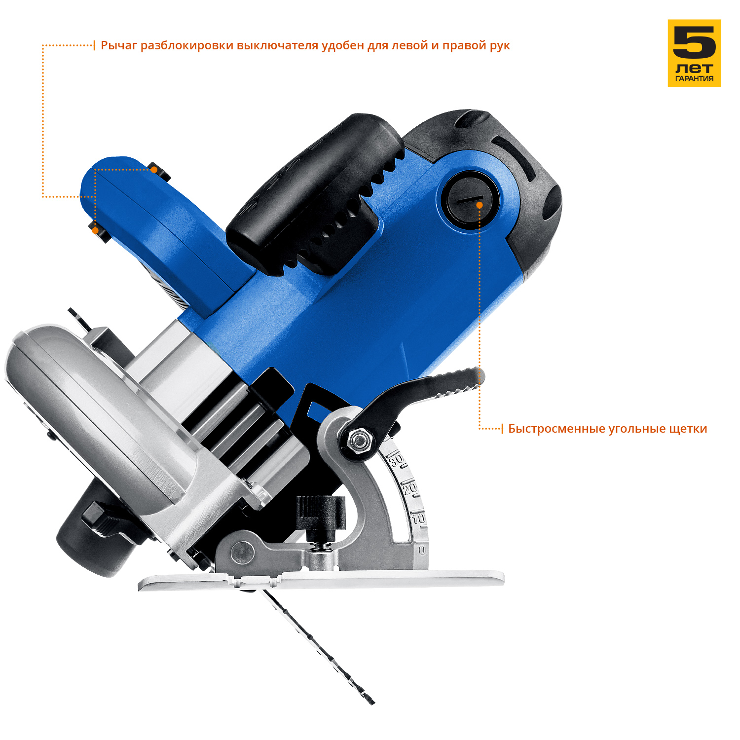 - Бесступенчатая регулировка глубины и угла пиления с удобными шкалами для точных работ