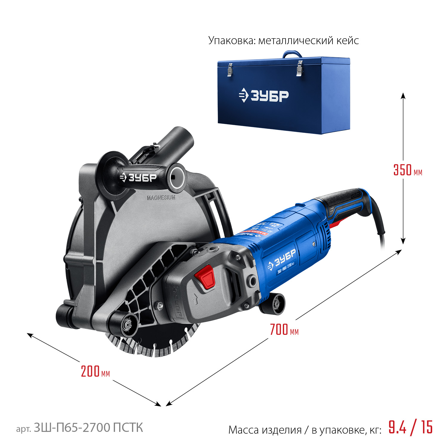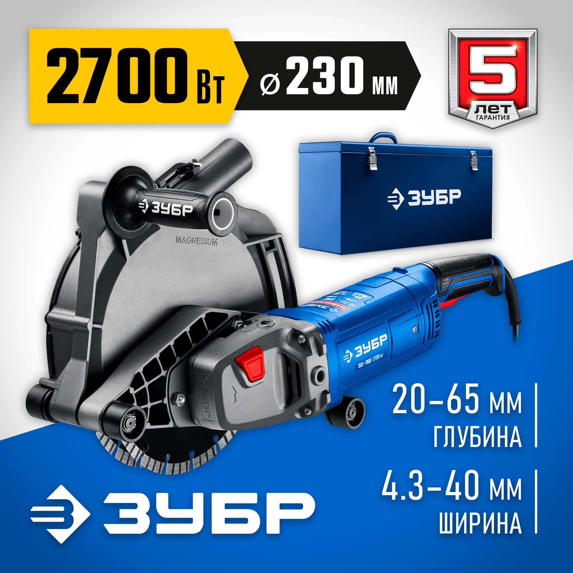 Лидер в серии профессиональных штроборезов ЗУБР для выполнения штроб в наиболее прочных бетонах. Максимально возможная мощность, широкие пределы глубины (до 65 мм) и ширины реза, полный набор электронных вспомогательных и защитных систем, высочайший уровень надежности, эргономичная конструкция - максимум возможностей для Ваших задач Расширенная комплектация с фирменным кейсом для хранения и переноски