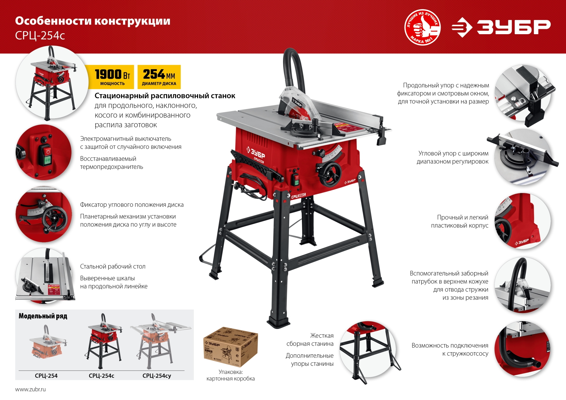 Стационарный распиловочный станок ЗУБР СРЦ-254с : Идеальное сочетание мощности, диаметра диска и глубины реза