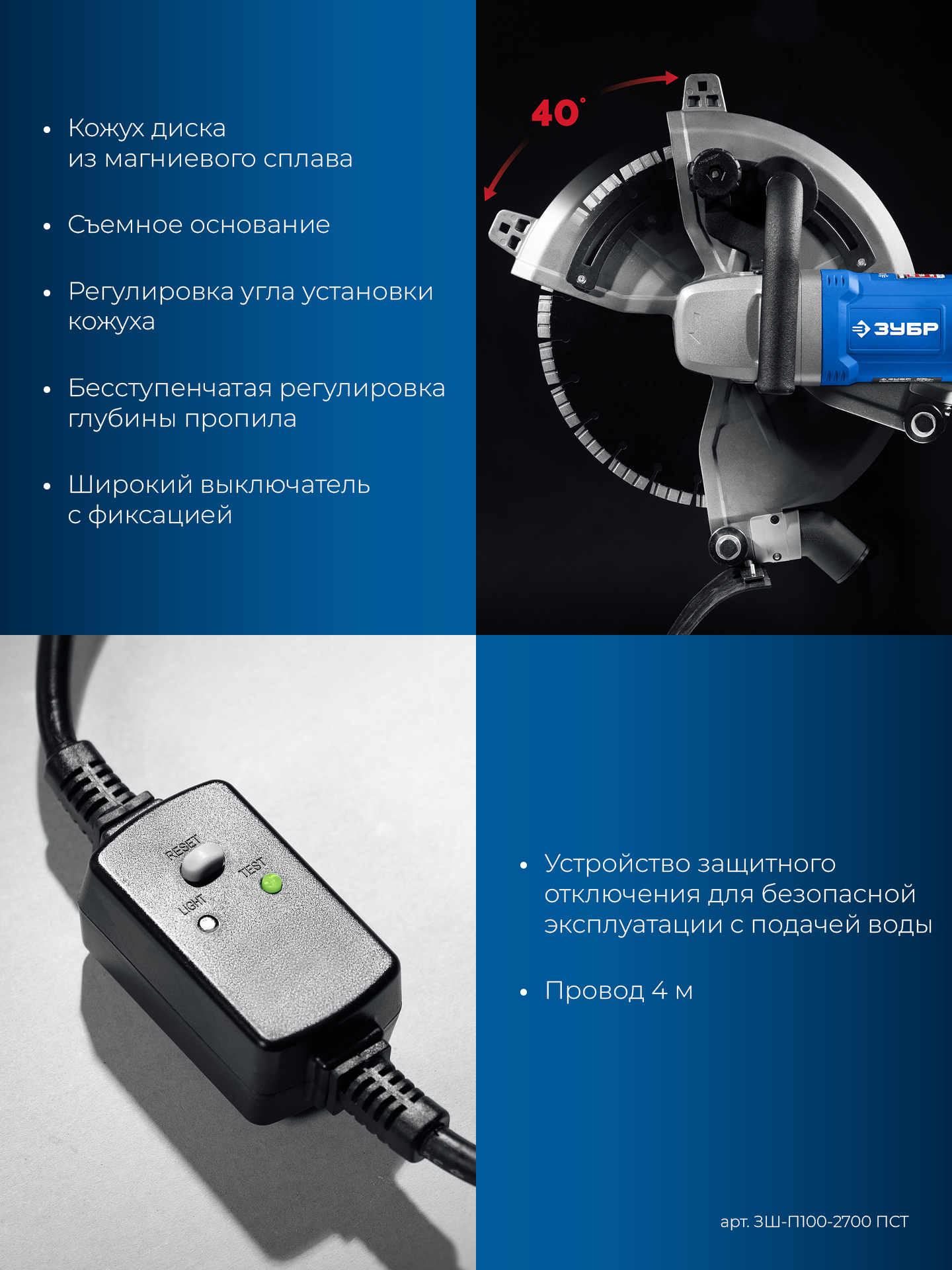 - Возможность работы с подачей воды к месту реза улучшает режим работы диска и уменьшает образование пыли