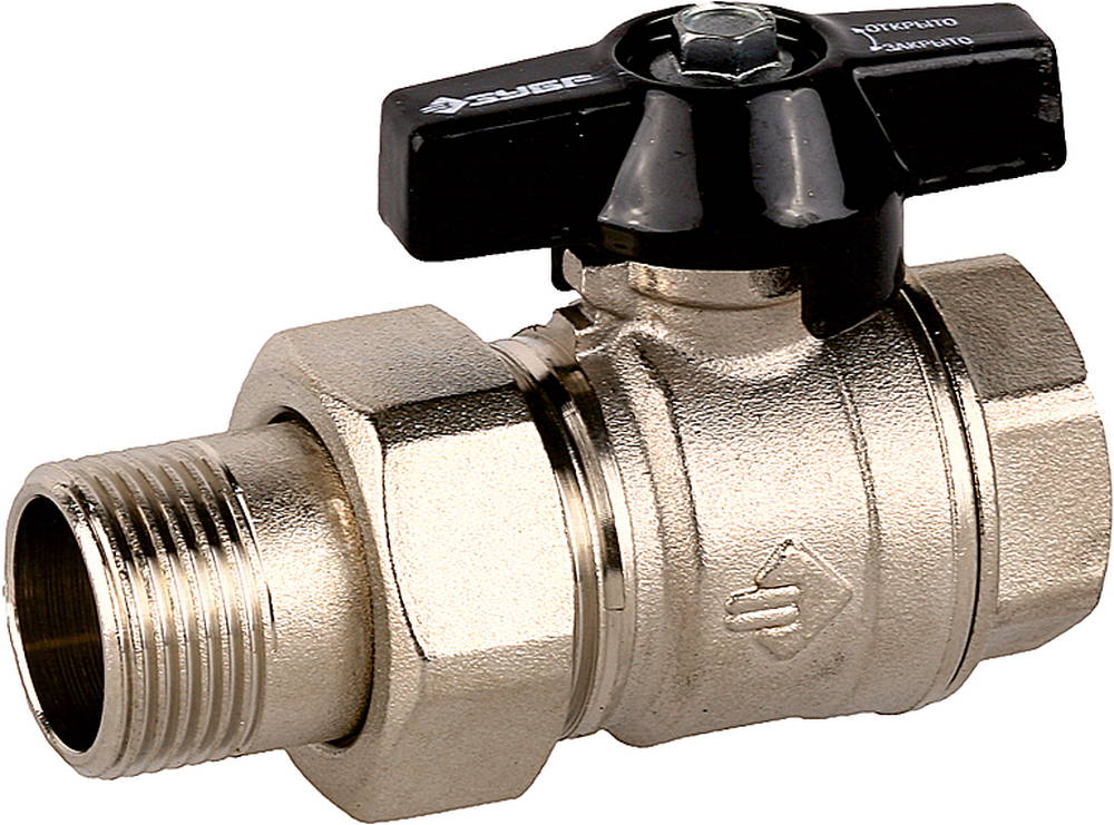 ЗУБР d 3/4″, ручка ″бабочка″, ″мама-папа″, полнопроходной шаровой кран с накидной гайкой (4-51327-C-3/4)