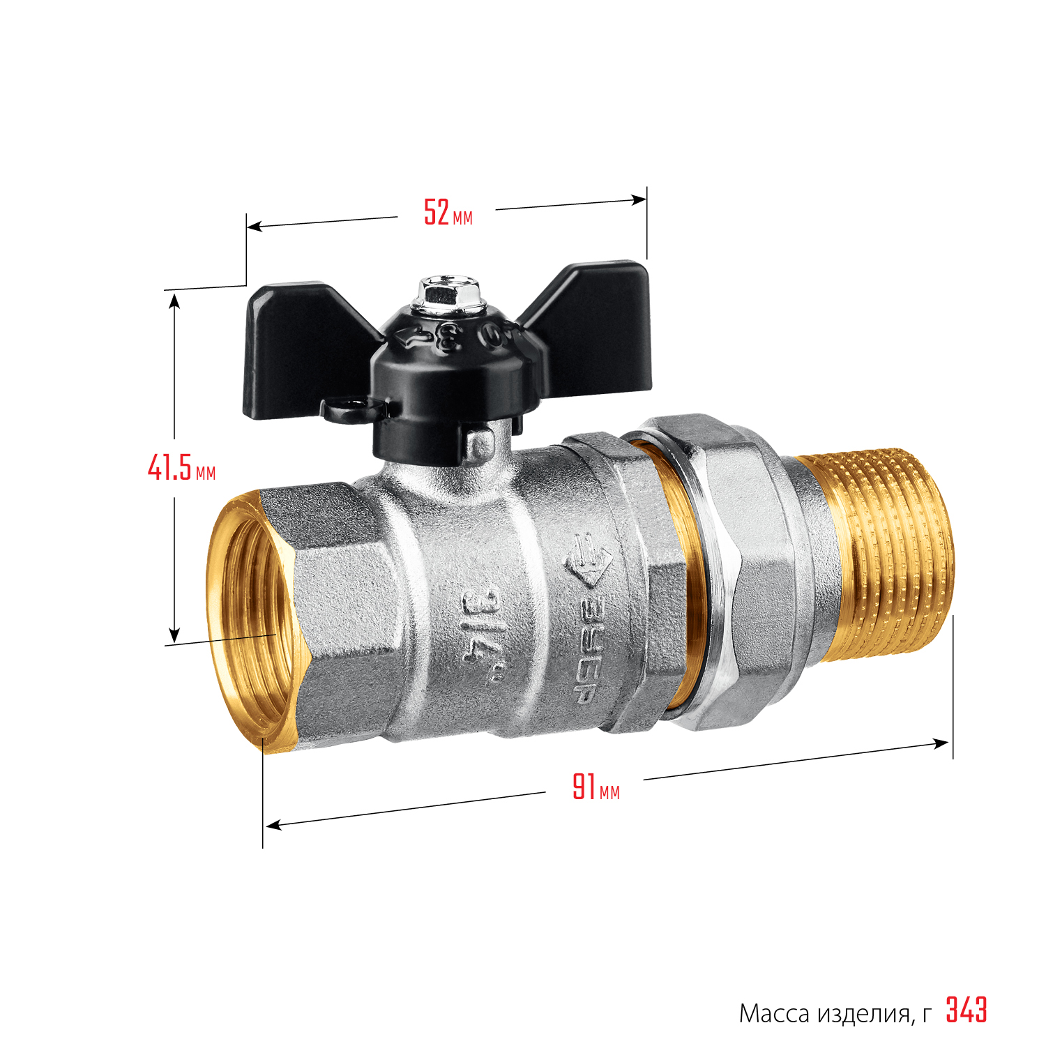 ЗУБР d 3/4″, ручка ″бабочка″, ″мама-папа″, полнопроходной шаровой кран с накидной гайкой (51321-3/4)