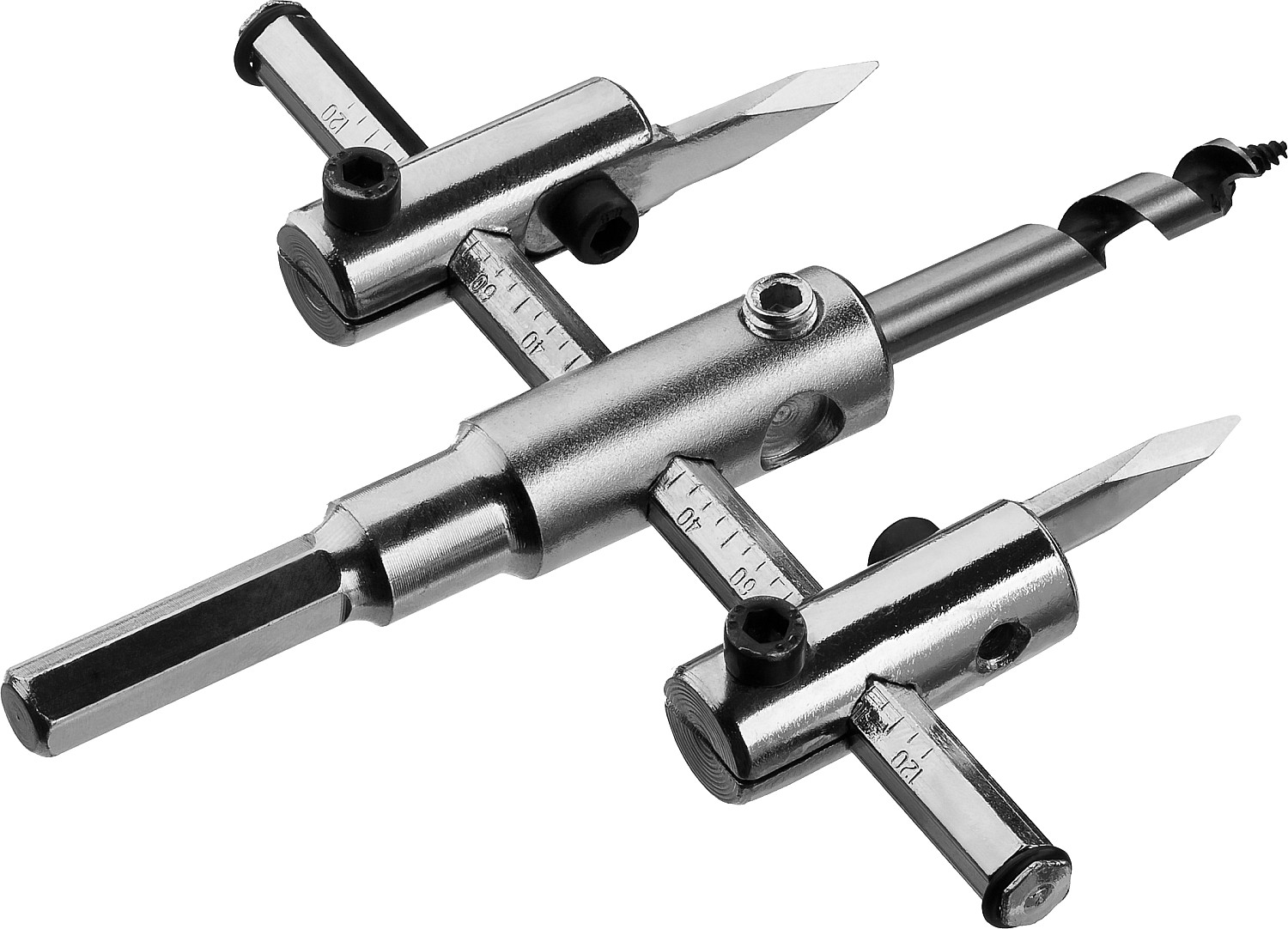 Применяется в безударном режиме на электрических дрелях и легких перфораторах мощностью не менее 750 Вт для сверления отверстий заданного диаметра древесине, фанере и ДСП толщиной до 30мм