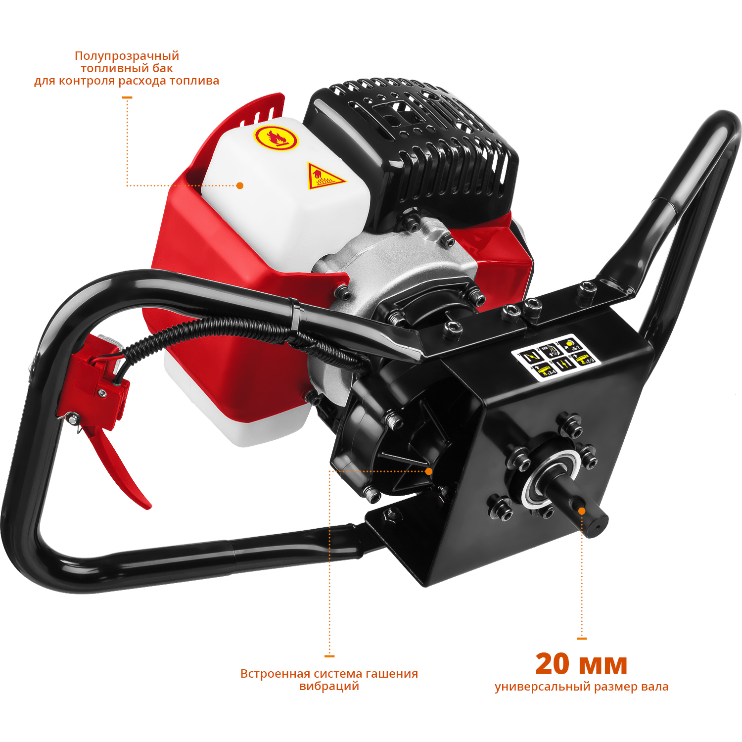 - Полупрозрачный топливный бак для контроля за расходом топлива