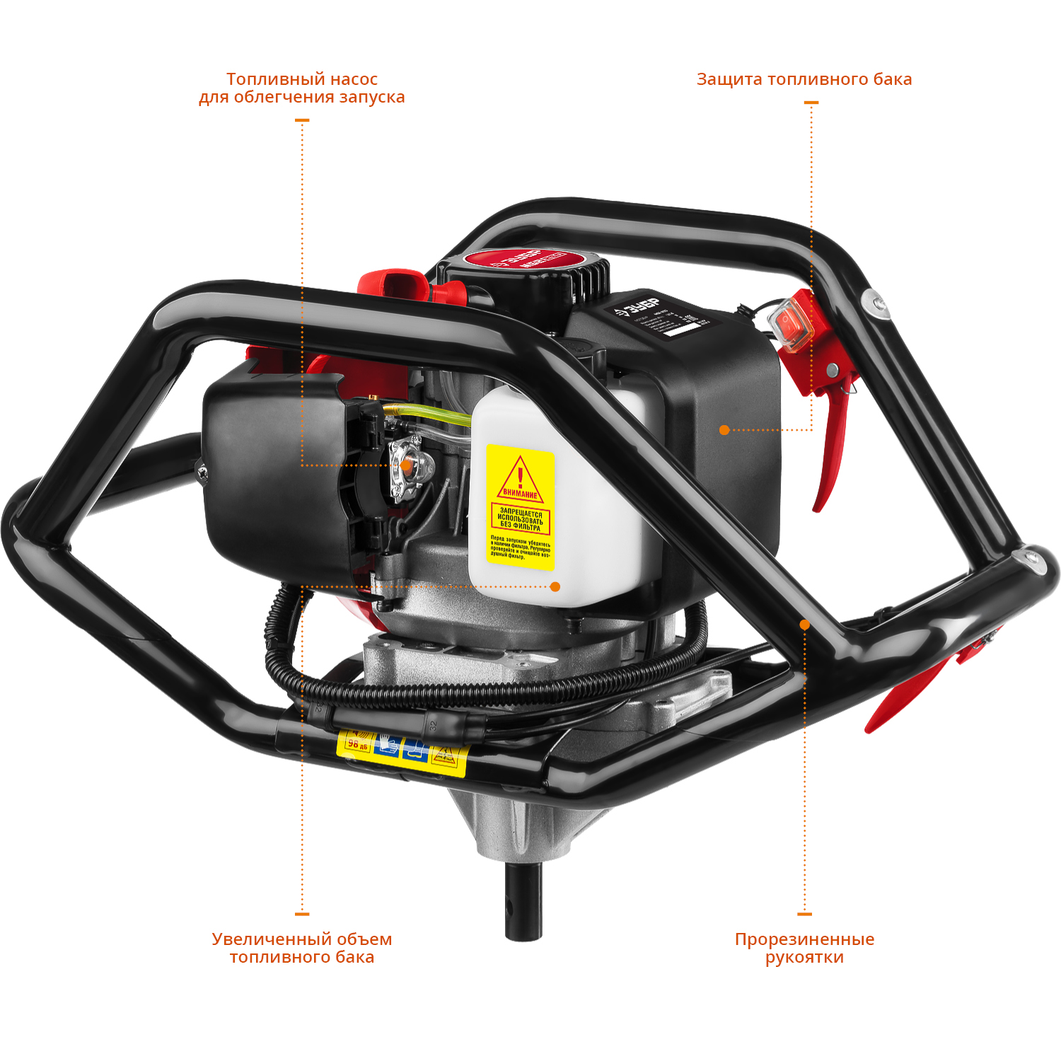 Универсальный мотобур оптимален к применению при монтаже столбов, заборов, ограждений и других целей связанных с бурением грунта. Конструкция рукоятки позволяет работать как одному оператору, так и двум одновременно, что повышает эффективность бурения и обеспечивает дополнительную сохранность двигателя при работе и транспортировке.