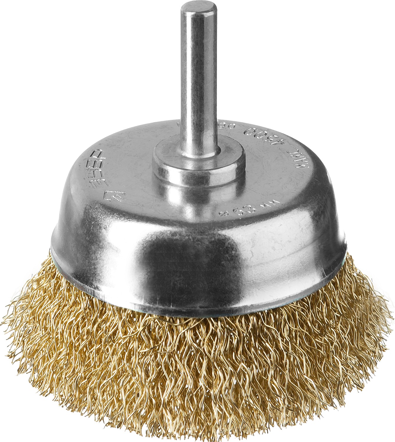 ЗУБР d 63 мм, витая латунированная, стальная 0.3 мм, чашечная щетка для дрели, Профессионал (3525-063)