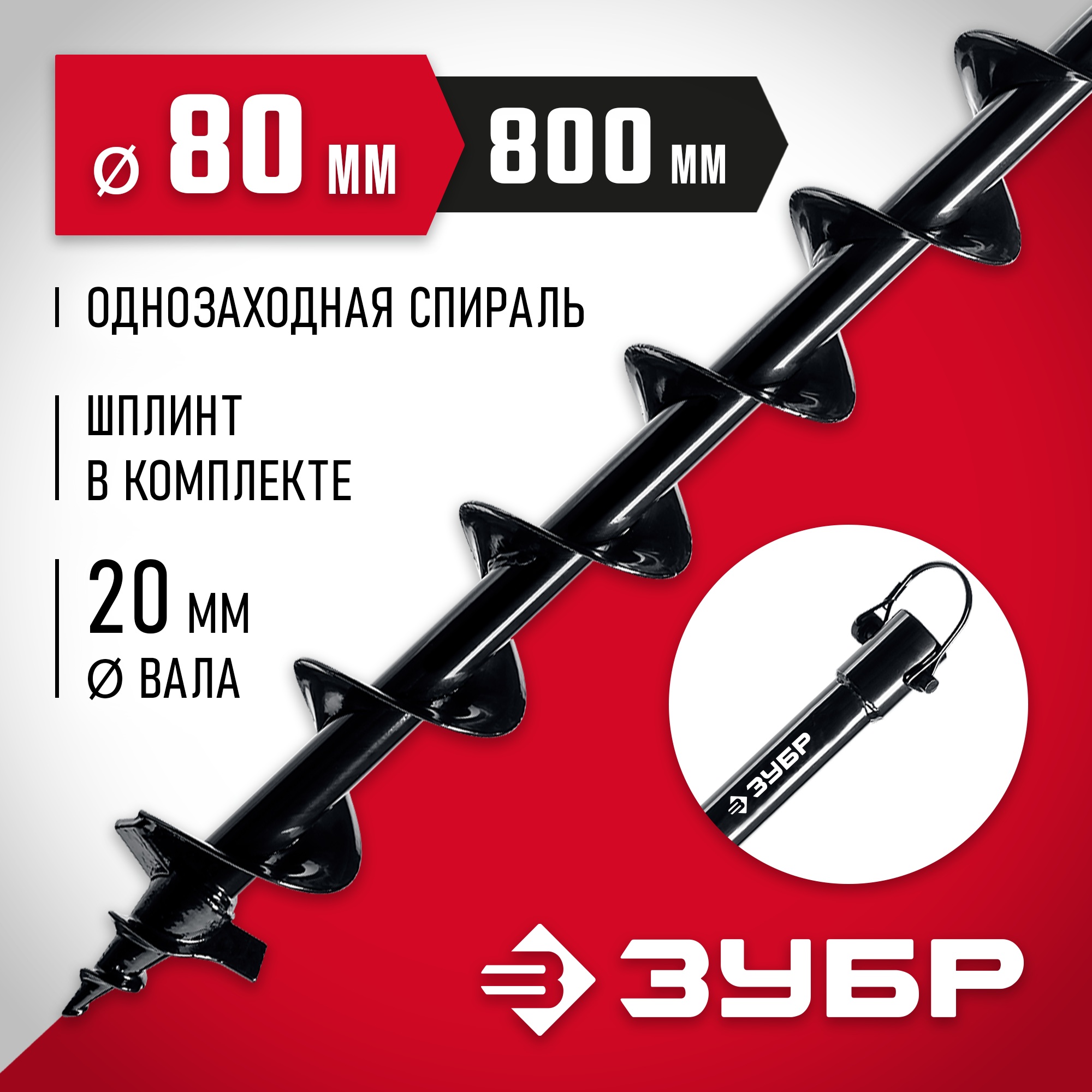 ЗУБР d 80 мм, грунт, шнек для мотобуров (7051-8)