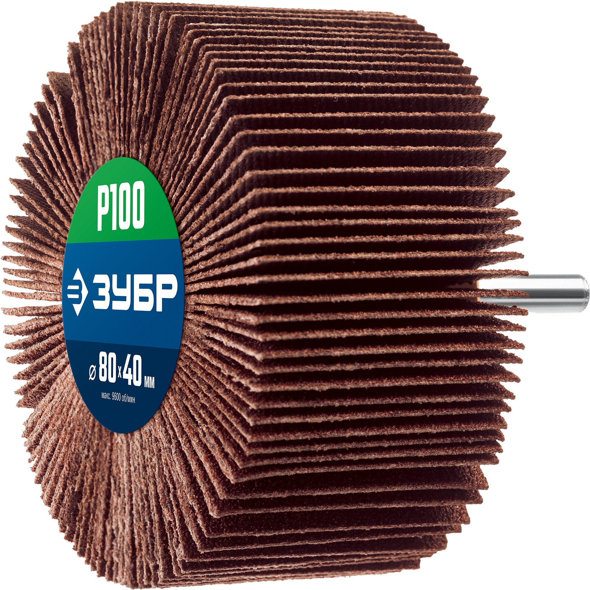 ЗУБР d 80 x 40 мм, P100, на шпильке d 6 мм, круг шлифовальный лепестковый, Профессионал (36604-100)