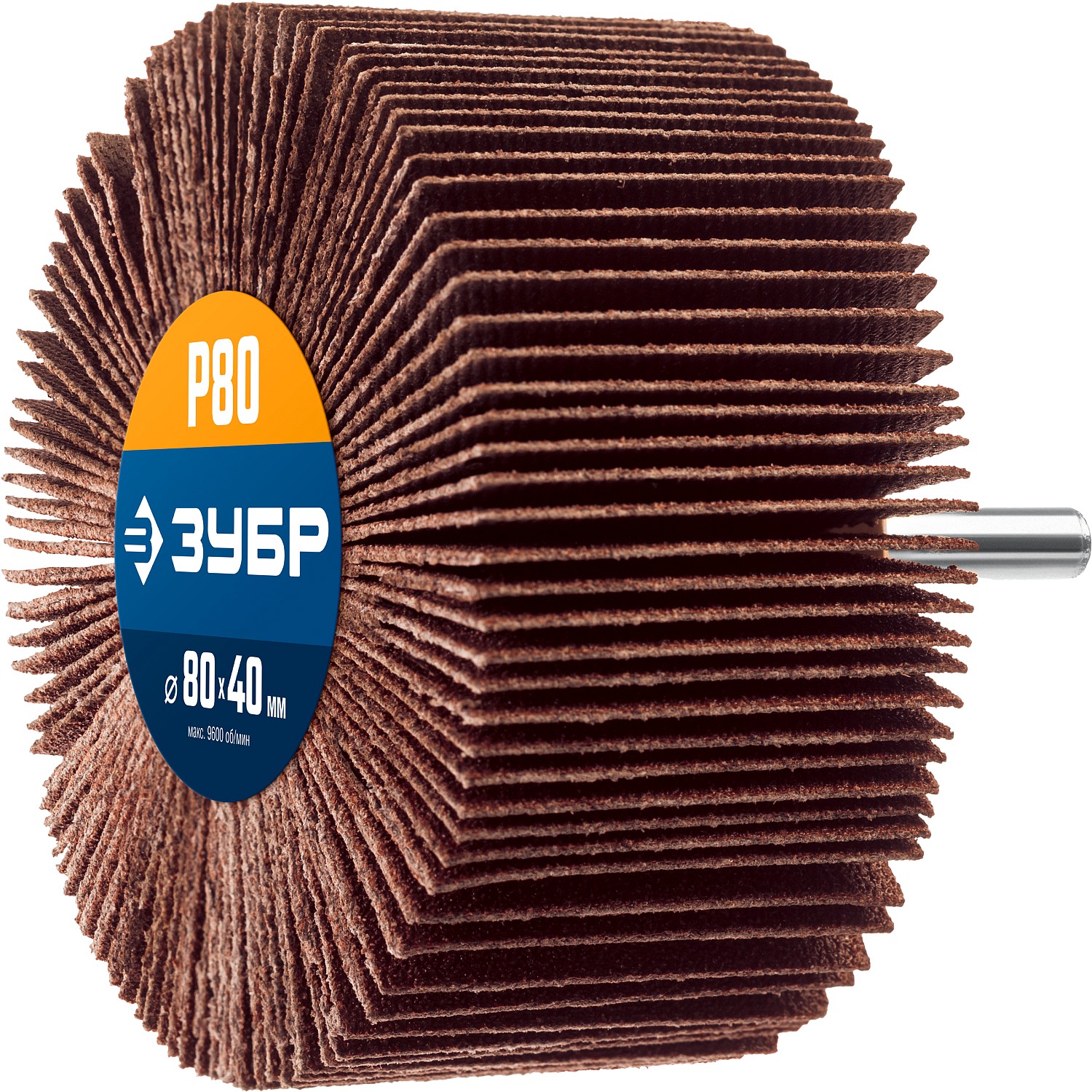 ЗУБР d 80 x 40 мм, P80, на шпильке d 6 мм, круг шлифовальный лепестковый, Профессионал (36604-080)