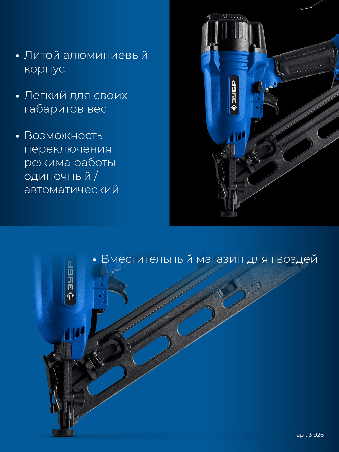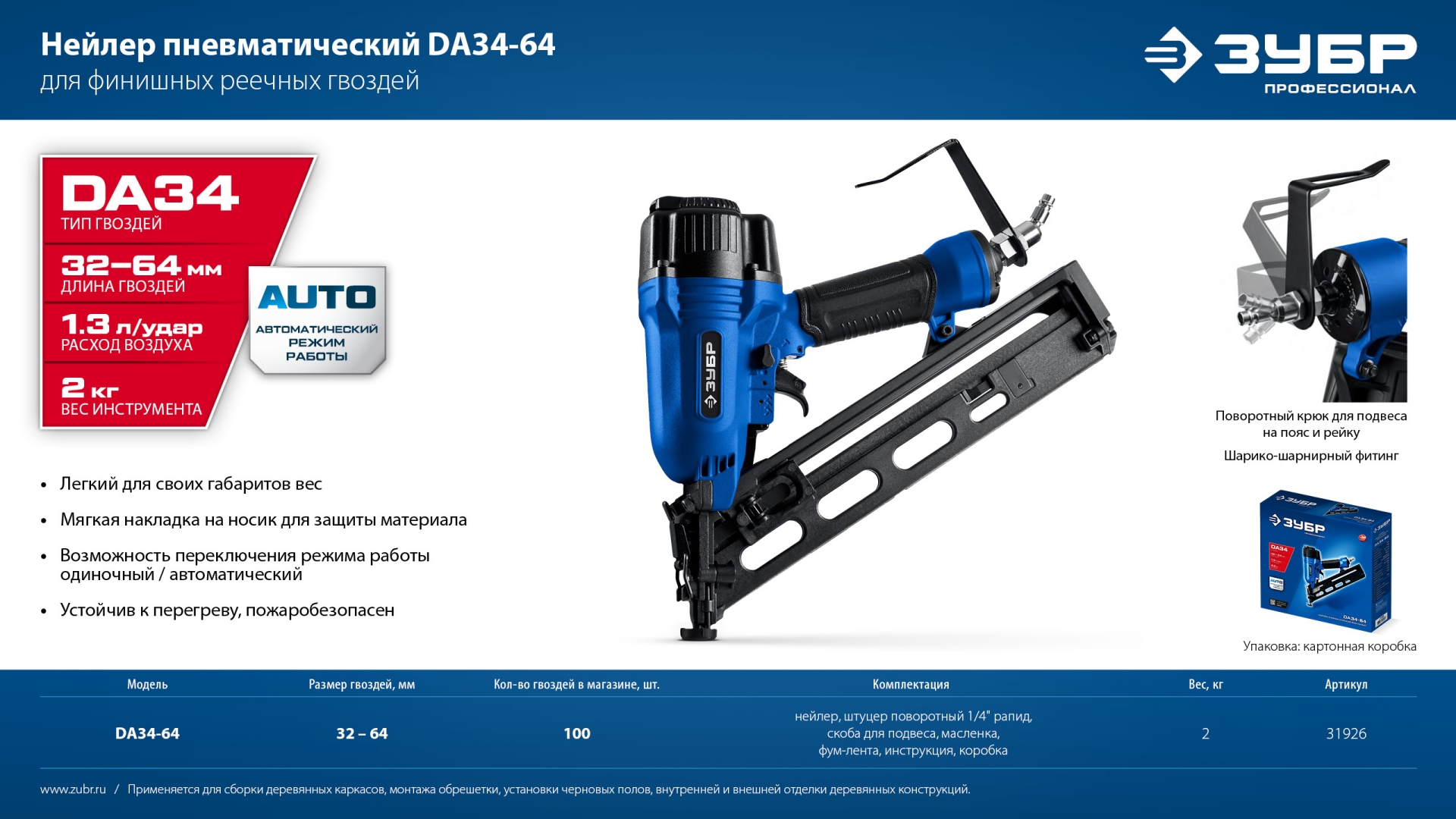 Профессиональный нейлер для забивания гвоздей большой длины. Широкий диапазон применений, вплоть до сборки каркасов деревянных домов.