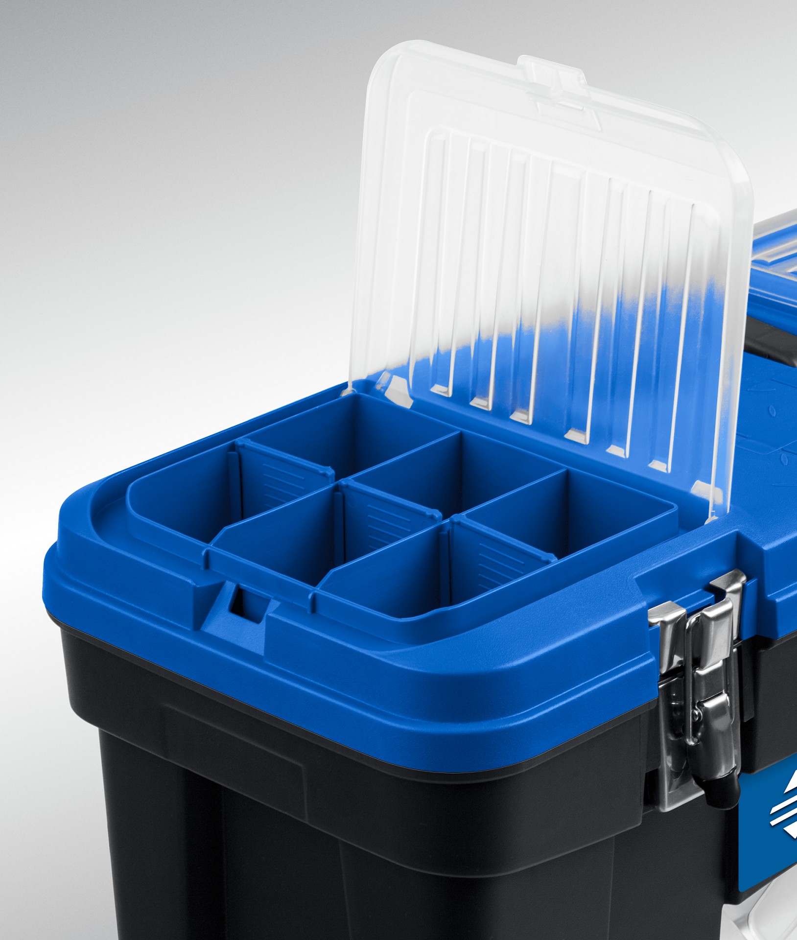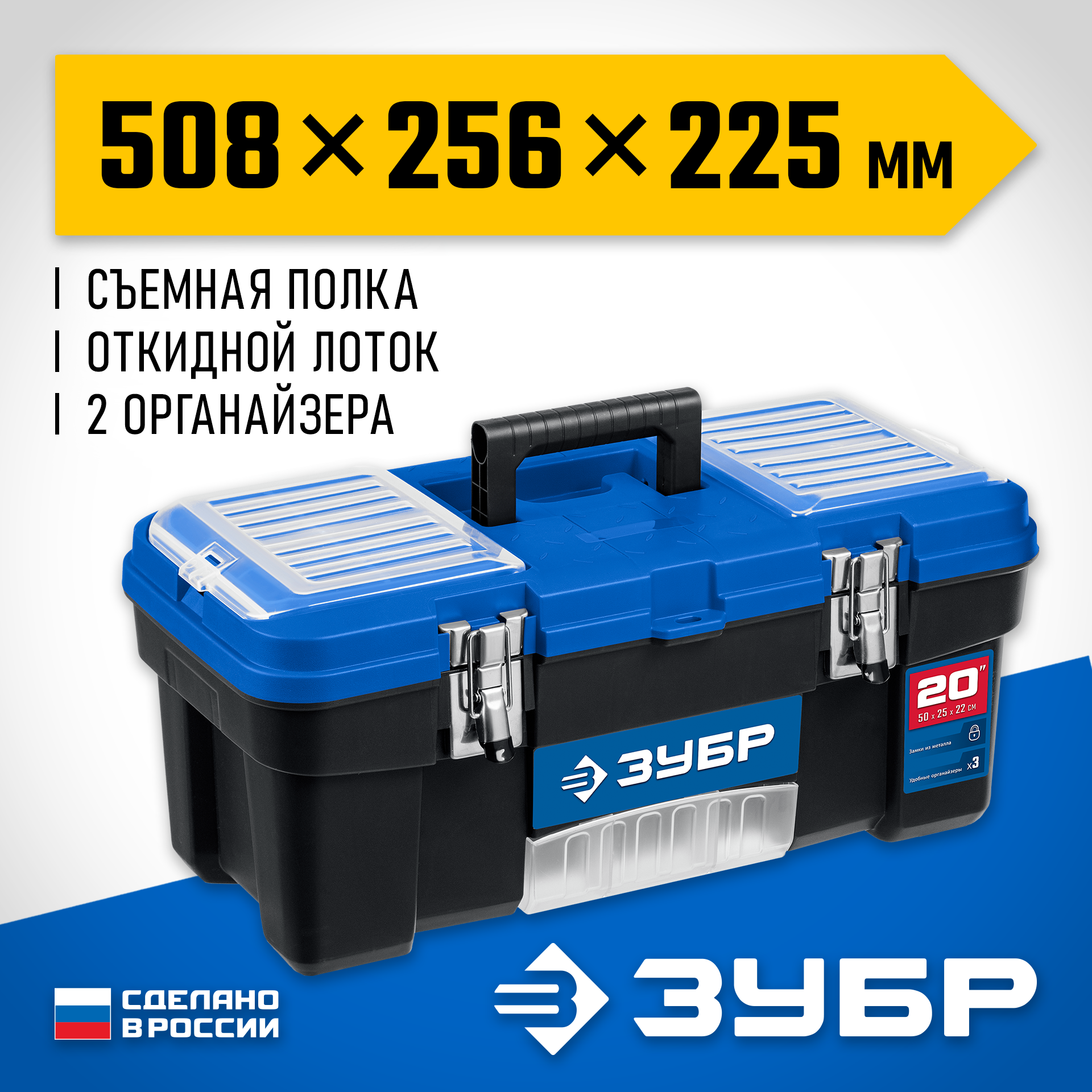 Ящик для инструментов с металлическими замками, рассчитанными на повышенные нагрузки.