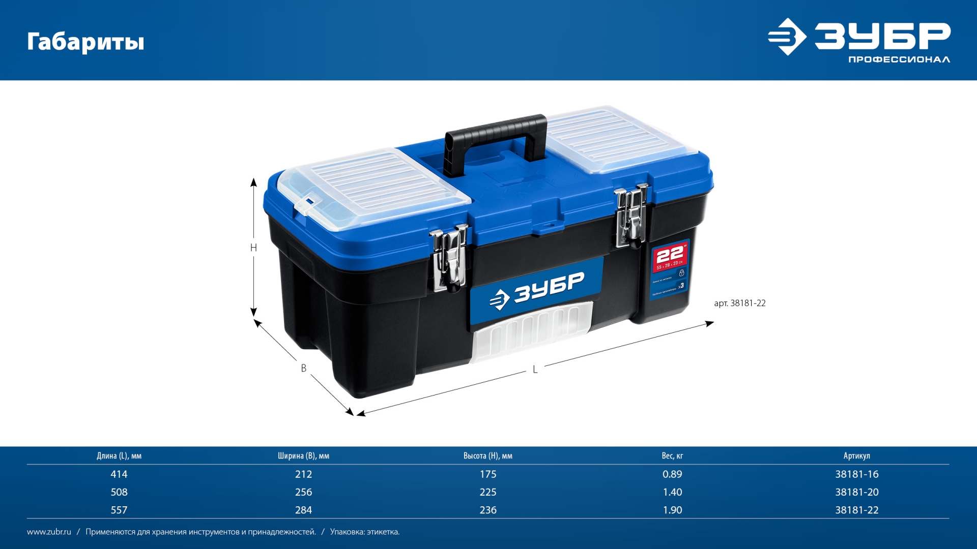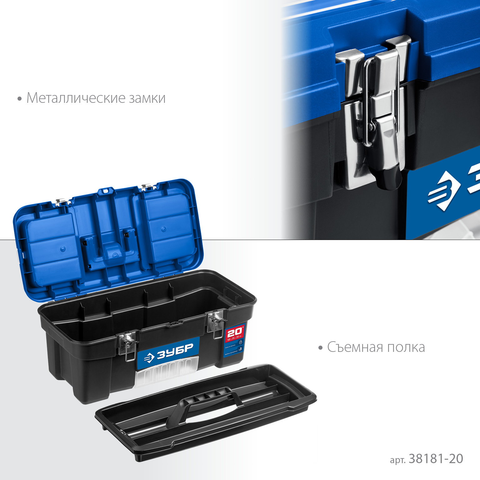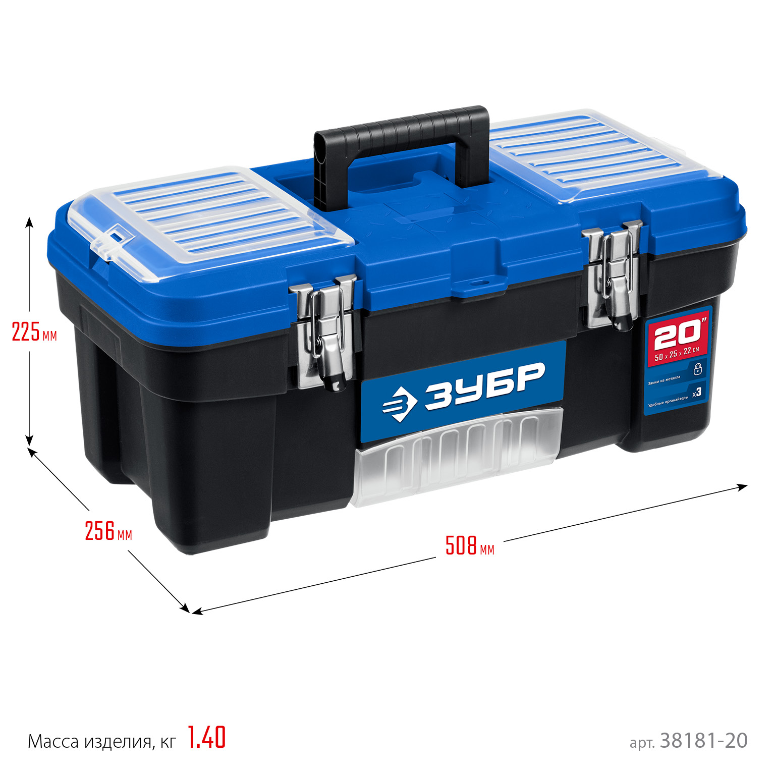 ЗУБР ДЕСНА-20, 508 x 256 x 225 мм, (20″), Пластиковый ящик для инструментов (38181-20)