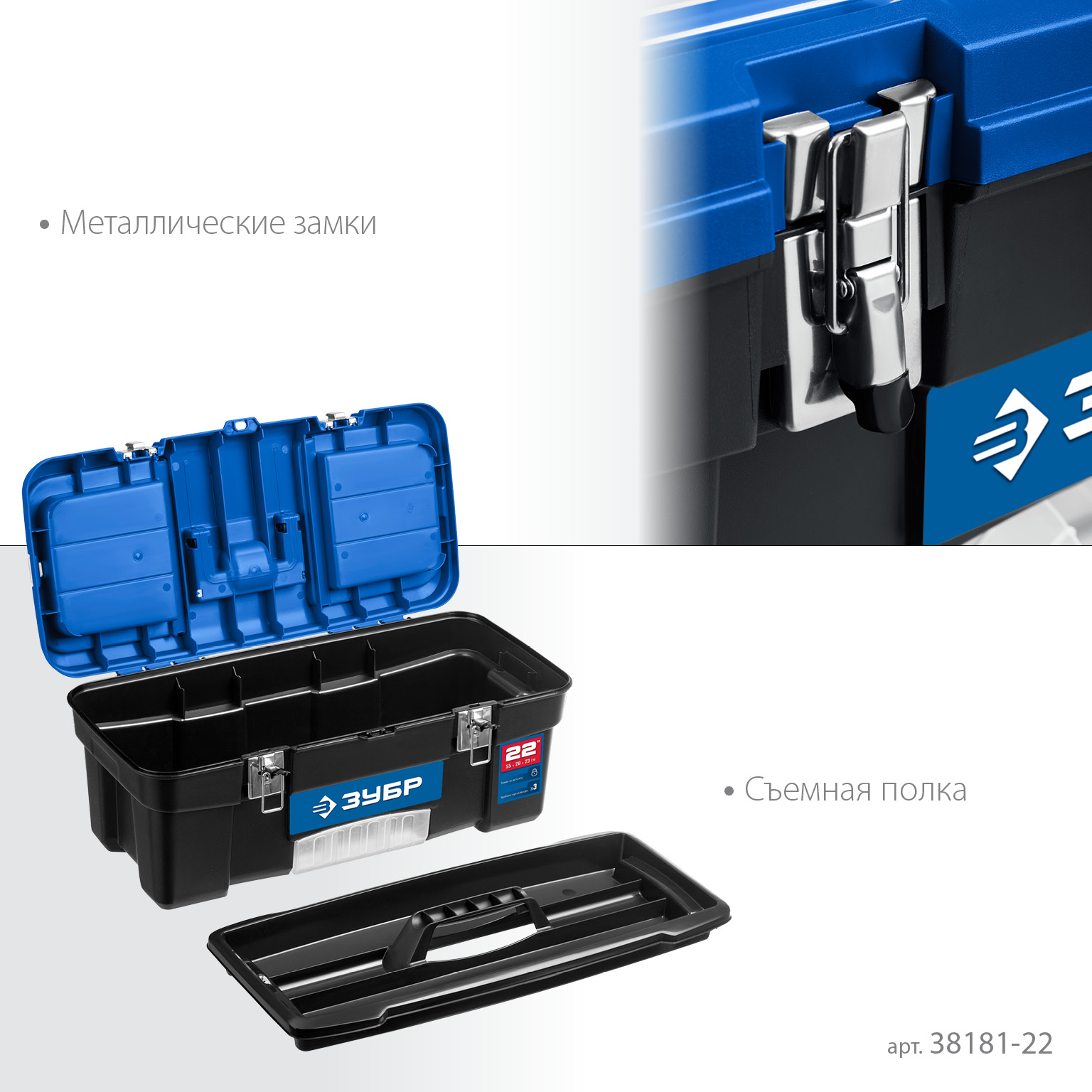Ящик для инструментов с металлическими замками, рассчитанными на повышенные нагрузки.