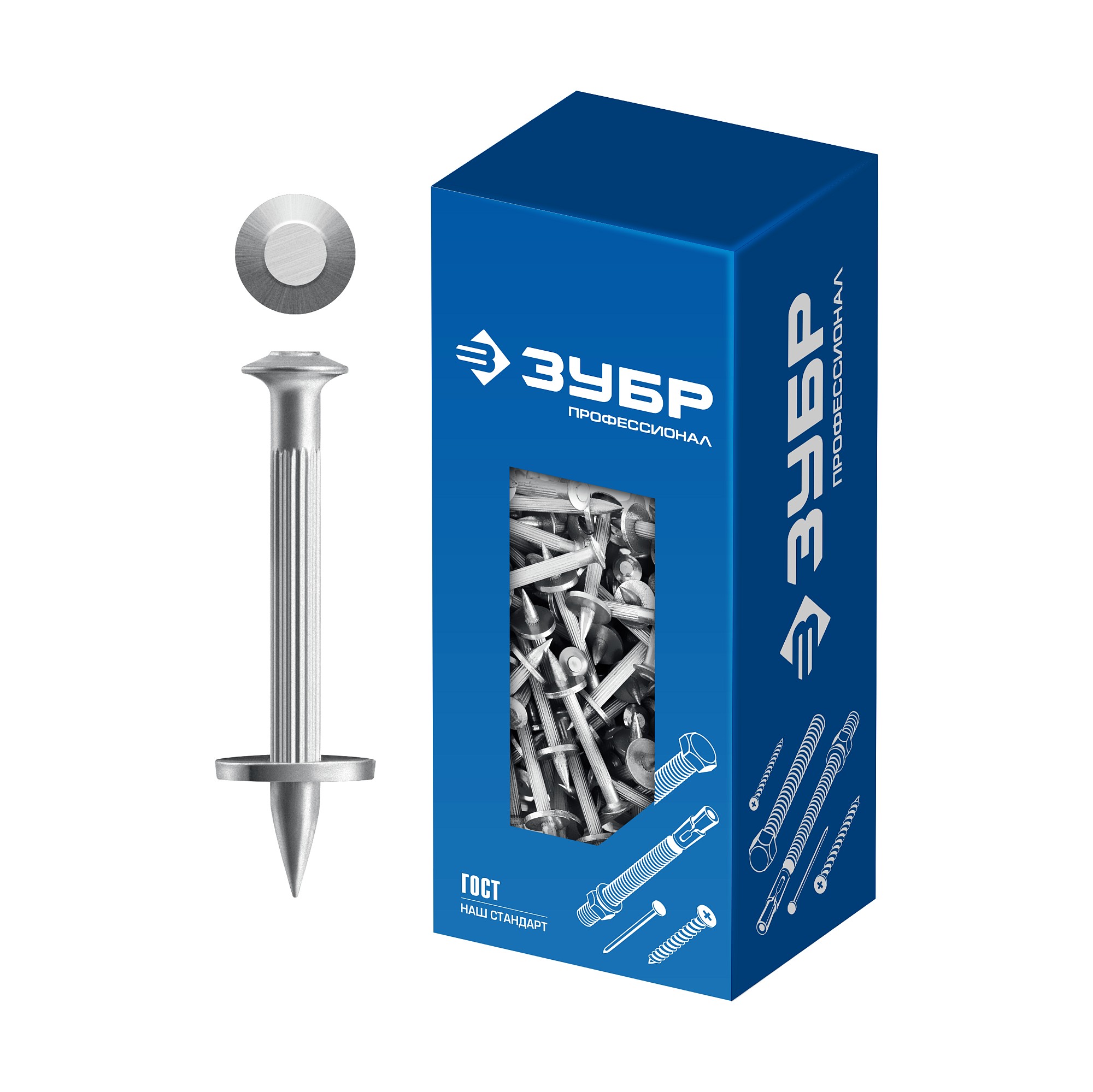 - Высокая прочность крепления: дюбель-гвоздь изготовлен из закаленной стали 70, установочная шайба при ударе смещается от острия к головке дюбель-гвоздя, надежно прижимая деталь к основанию
