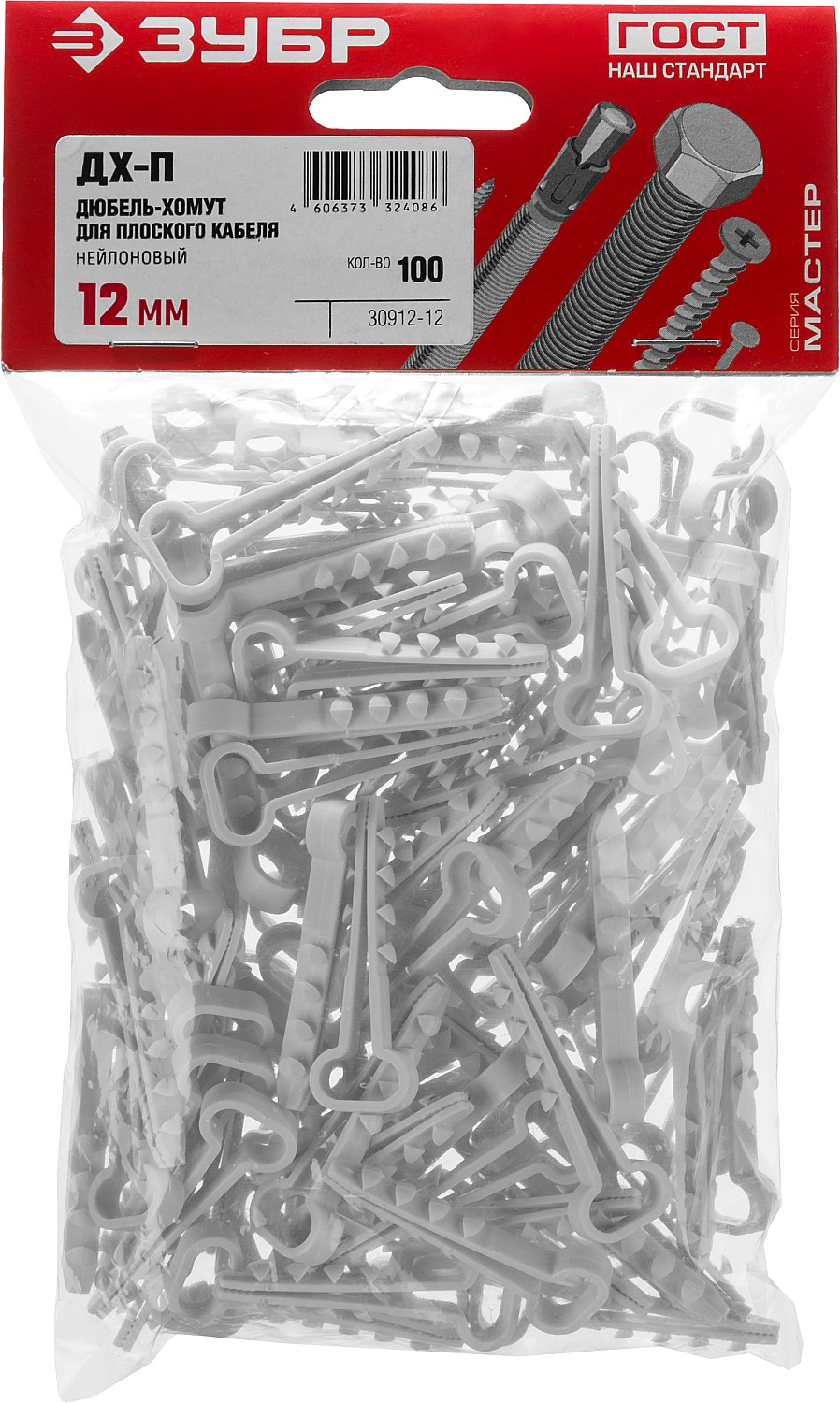 ЗУБР ДХ-П, 12 мм, нейлон, 100 шт, дюбель-хомут для плоского кабеля (30912-12)
