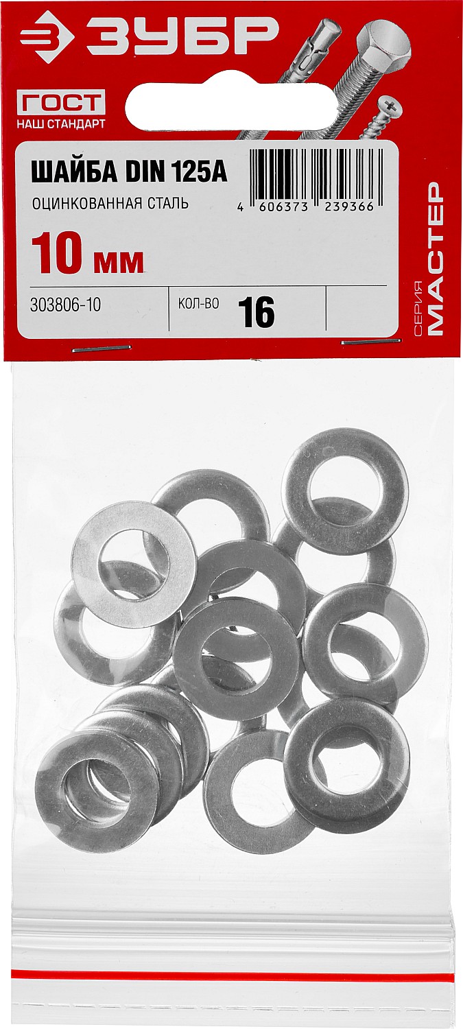 ЗУБР DIN 125А, 10 мм, цинк, 16 шт, шайба (303806-10)