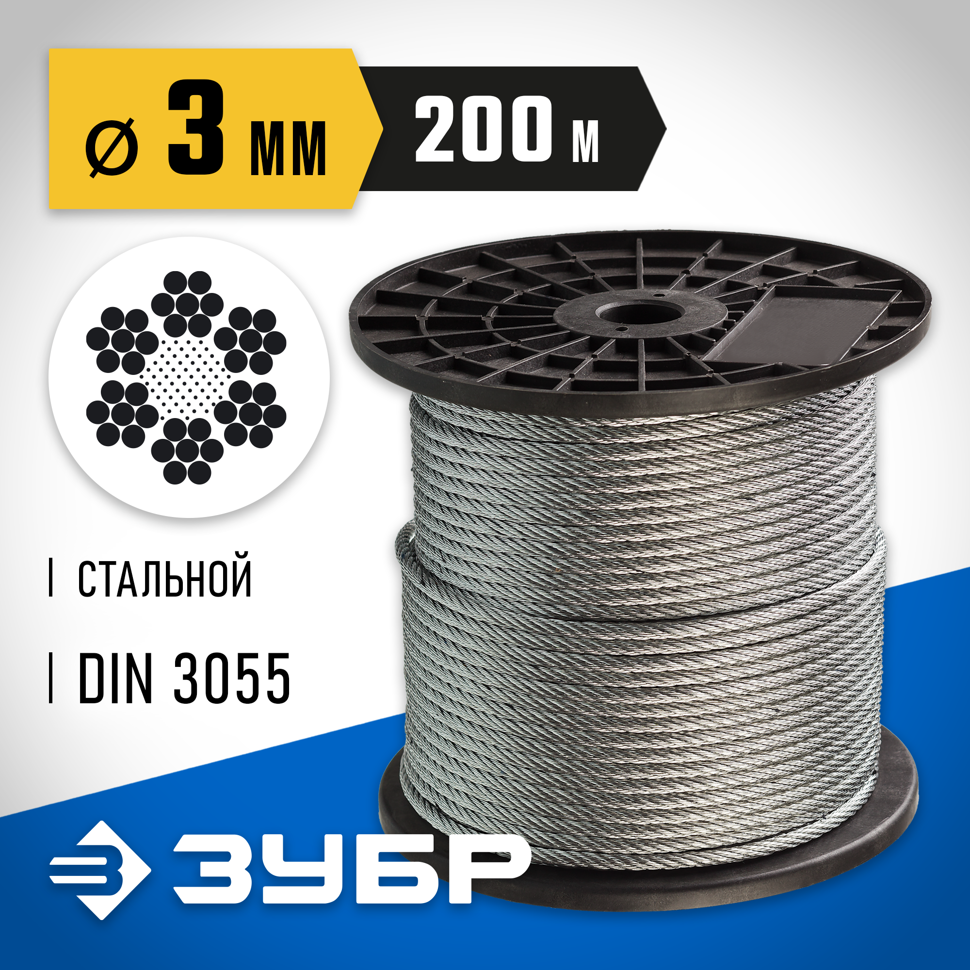 ЗУБР DIN 3055, свивка 6 x 7 + FC, 3 мм, L 200 м, стальной трос, Профессионал (4-304110-03)