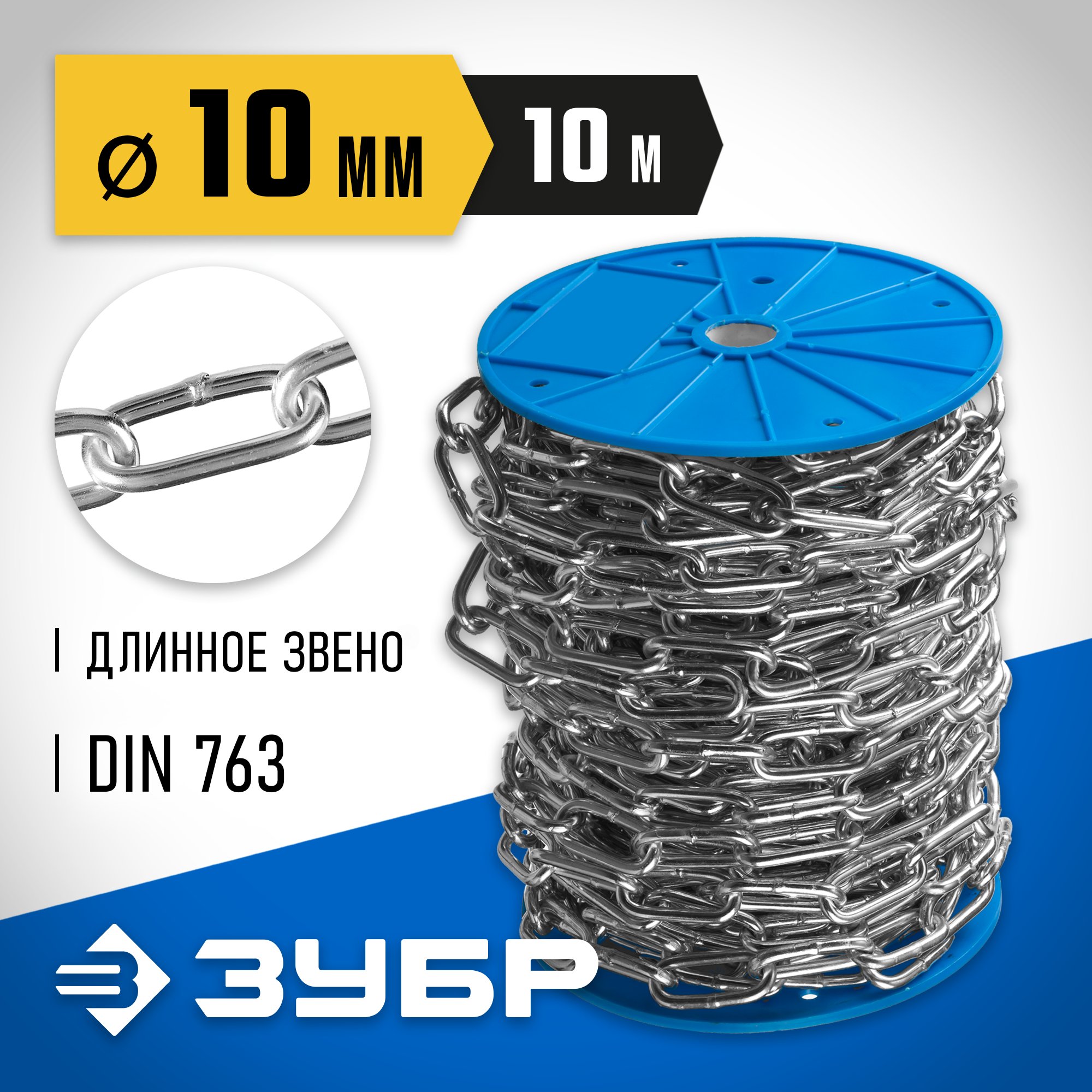 ЗУБР DIN 763, 10 мм, L 10 м, длиннозвенная цепь, Профессионал (4-304030-10)