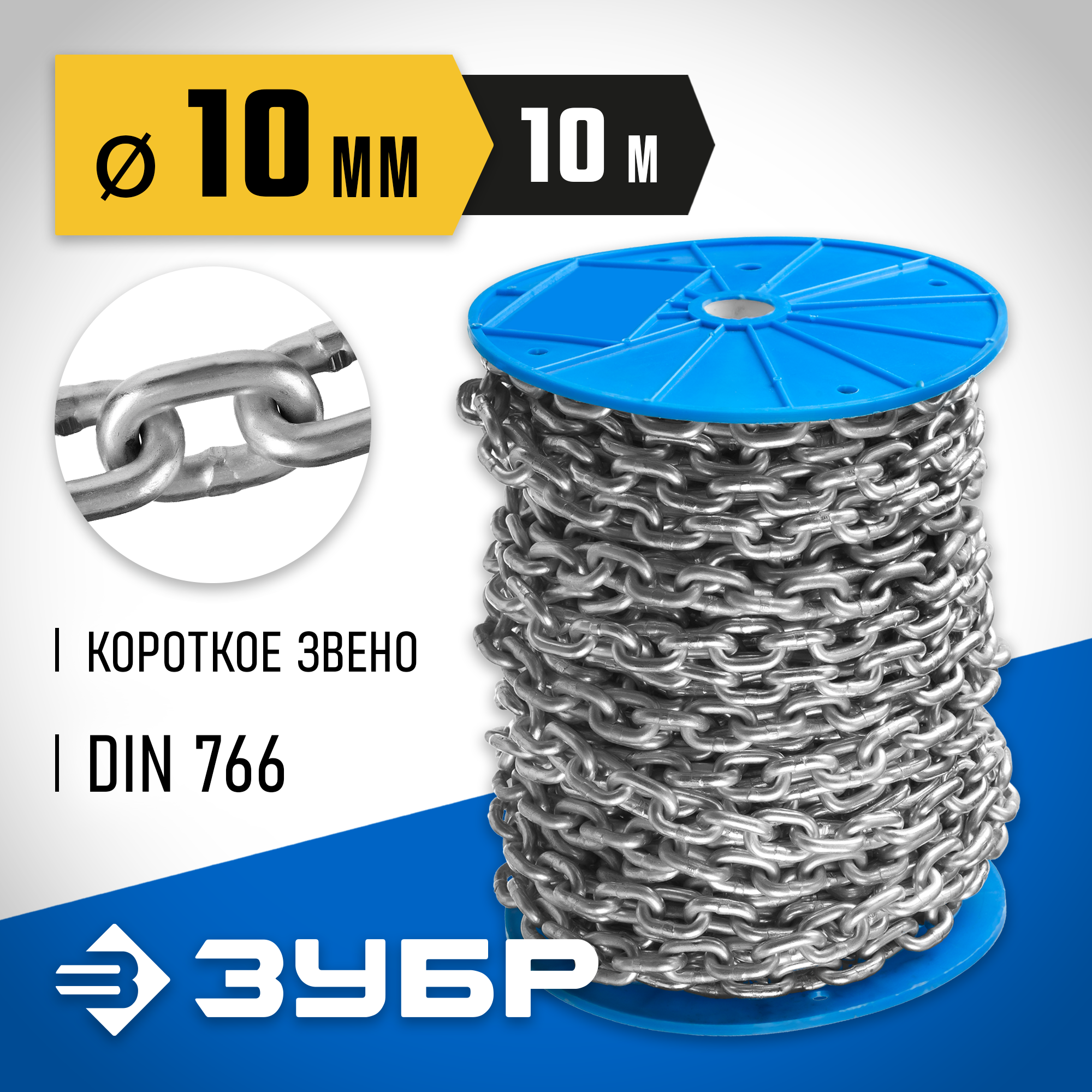ЗУБР DIN 766, 10 мм, L 10 м, короткозвенная цепь, Профессионал (4-304050-10)