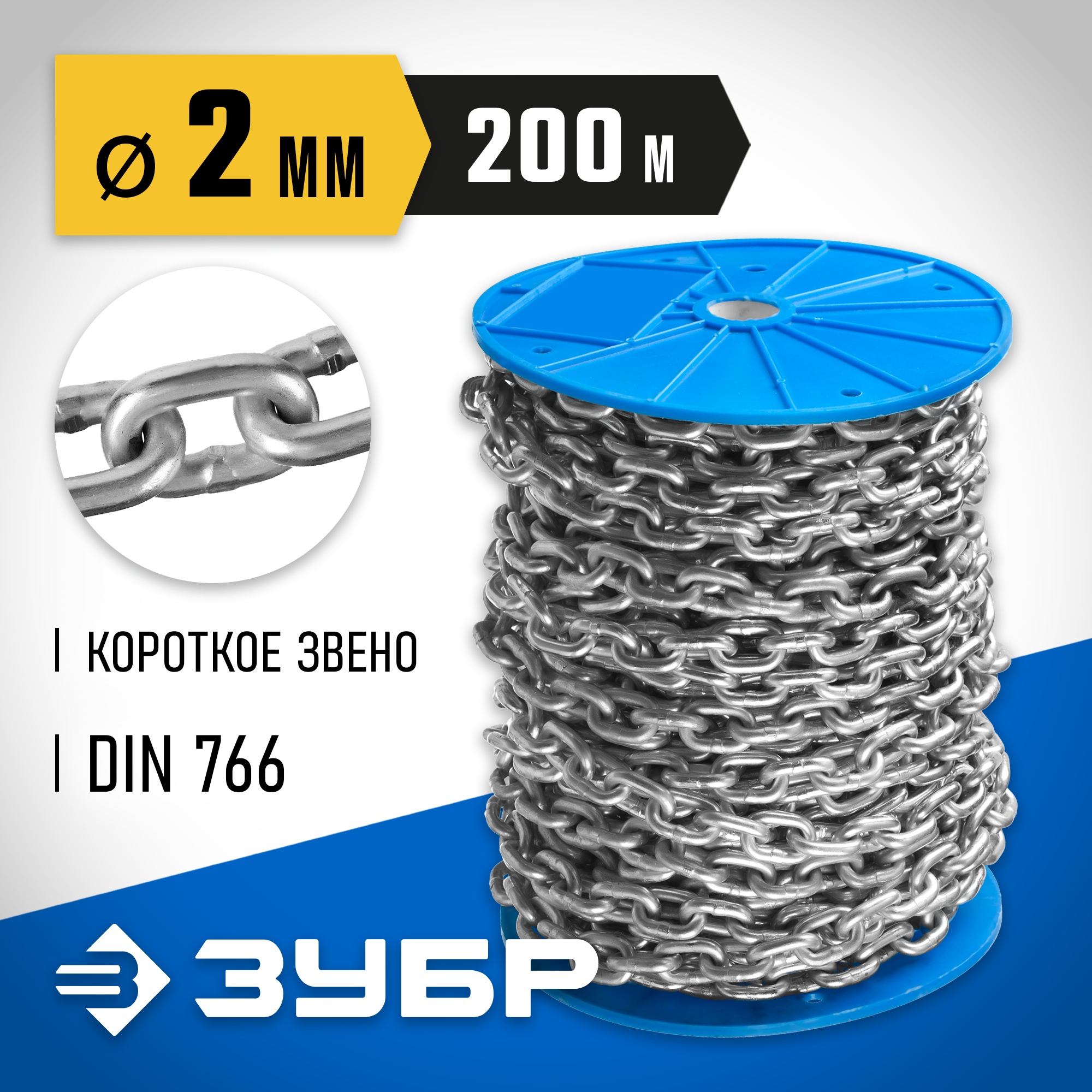 ЗУБР DIN 766, 2 мм, L 200 м, короткозвенная цепь, Профессионал (4-304050-02)