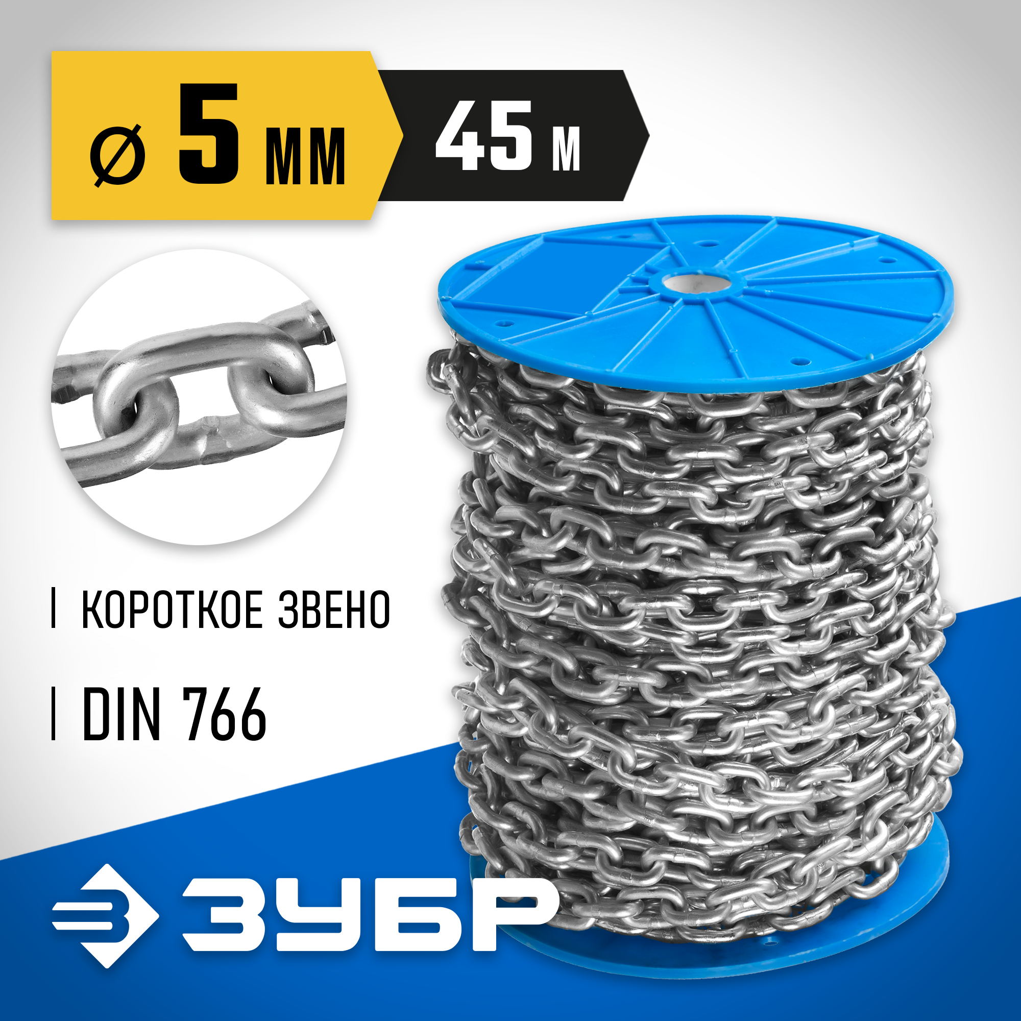 ЗУБР DIN 766, 5 мм, L 45 м, короткозвенная цепь, Профессионал (4-304050-05)