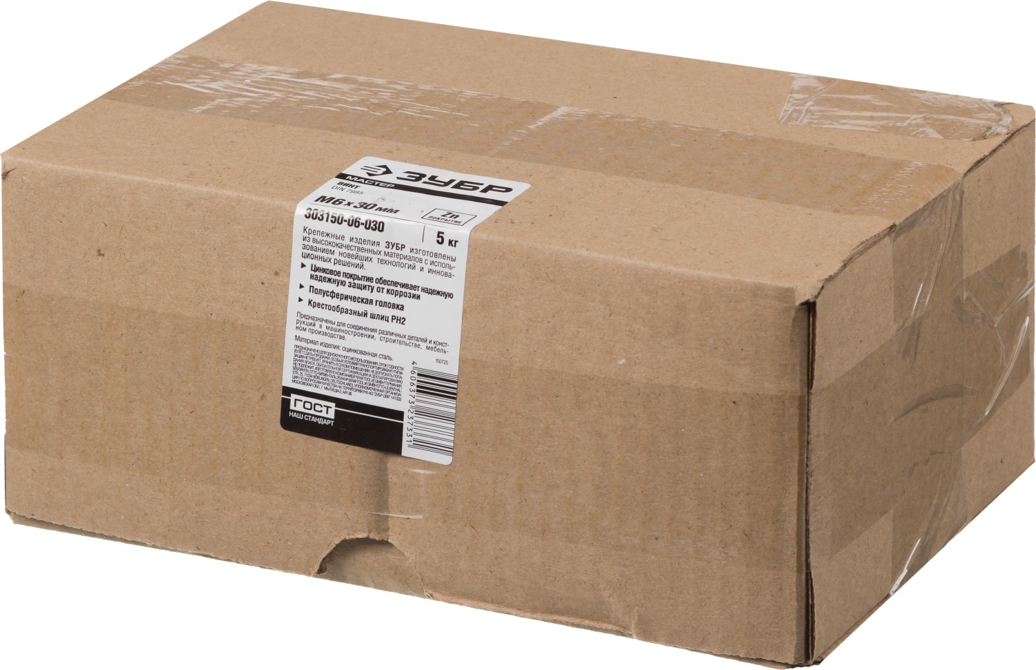 ЗУБР DIN 7985, кл. пр. 4.8, M6 х 30 мм, цинк, 5 кг, винт с полусферической головкой (303150-06-030)
