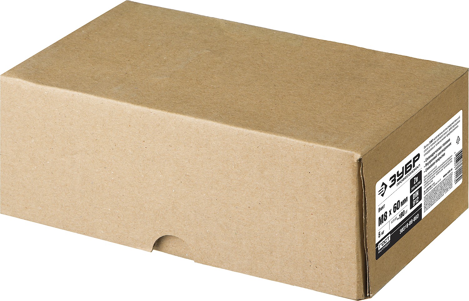 ЗУБР DIN 912, кл. пр. 8.8, М8 х 60 мм, цинк, 5 кг, винт с внутренним шестигранником, Профессионал (30318-08-060)