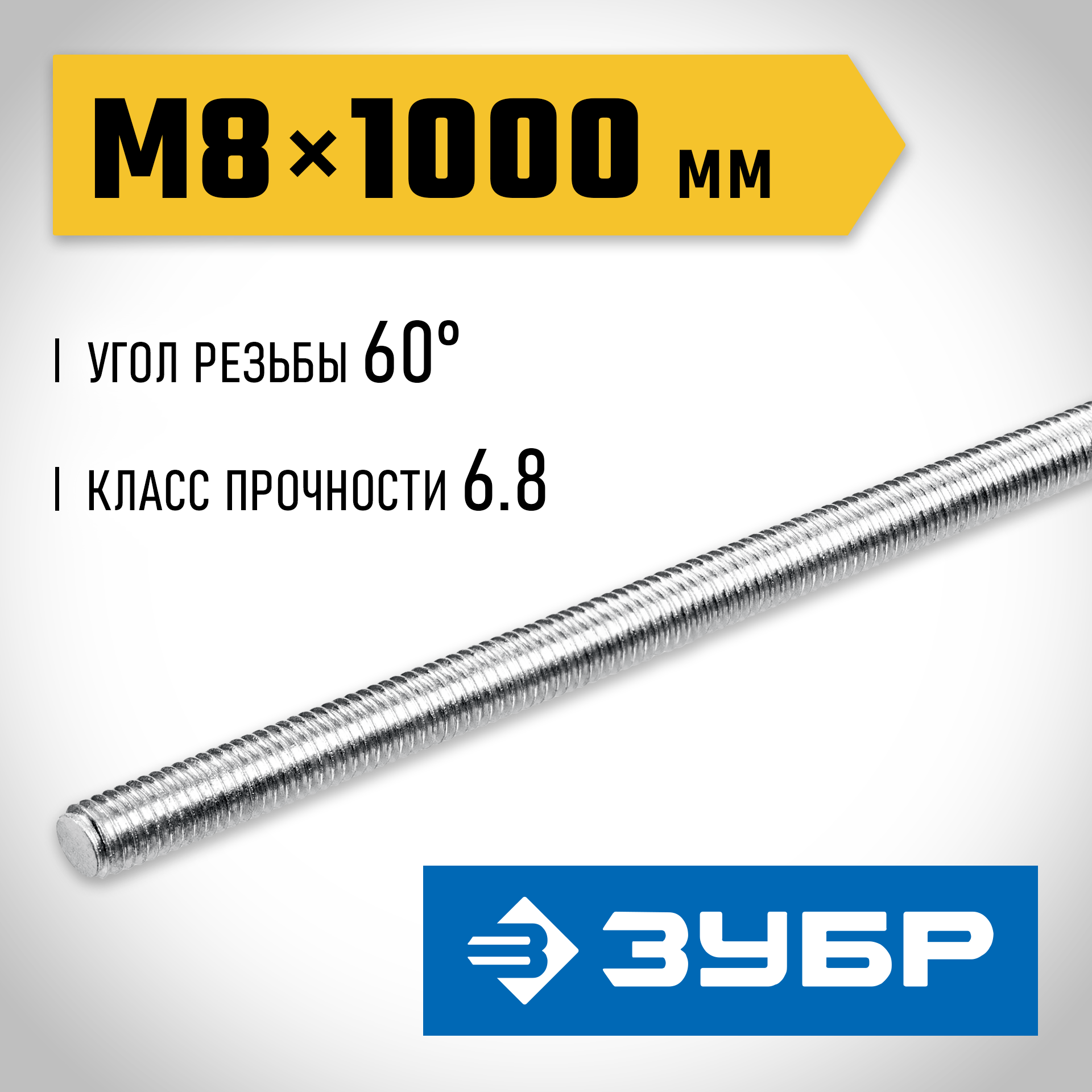 ЗУБР DIN 975, кл. пр. 6.8, М8 x 1000 мм, резьбовая шпилька, 1 шт, Профессионал (30336-08-1)