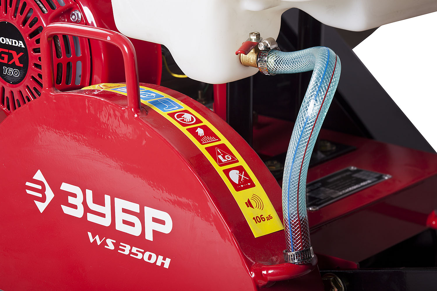 - Система охлаждения места реза с вместительным баком обеспечивает подачу воды к режущему диску и ограничивает пылеобразование в процессе работы