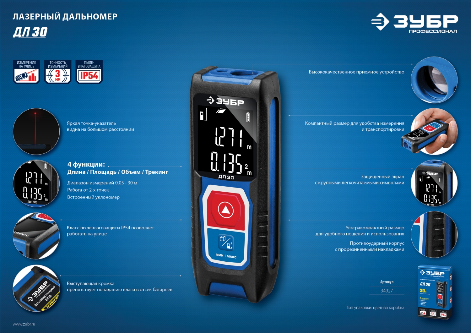 Компактный лазерный дальномер это высокоточный прибор для быстрого и простого измерения линейных расстояний, площадей и объёмов. Позволяет проводить весь цикл измерений одному человеку, значительно ускоряя выполнение разметочных работ и повышая надёжность полученных данных.