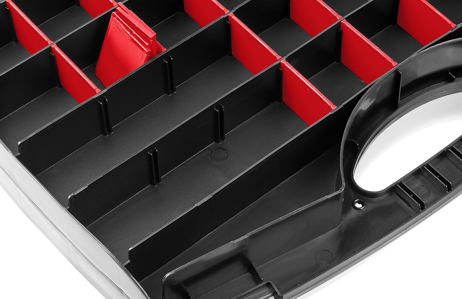 Большое количество ячеек и возможность их регулирования по ширине позволяет организовать удобное хранение инструментов и принадлежностей