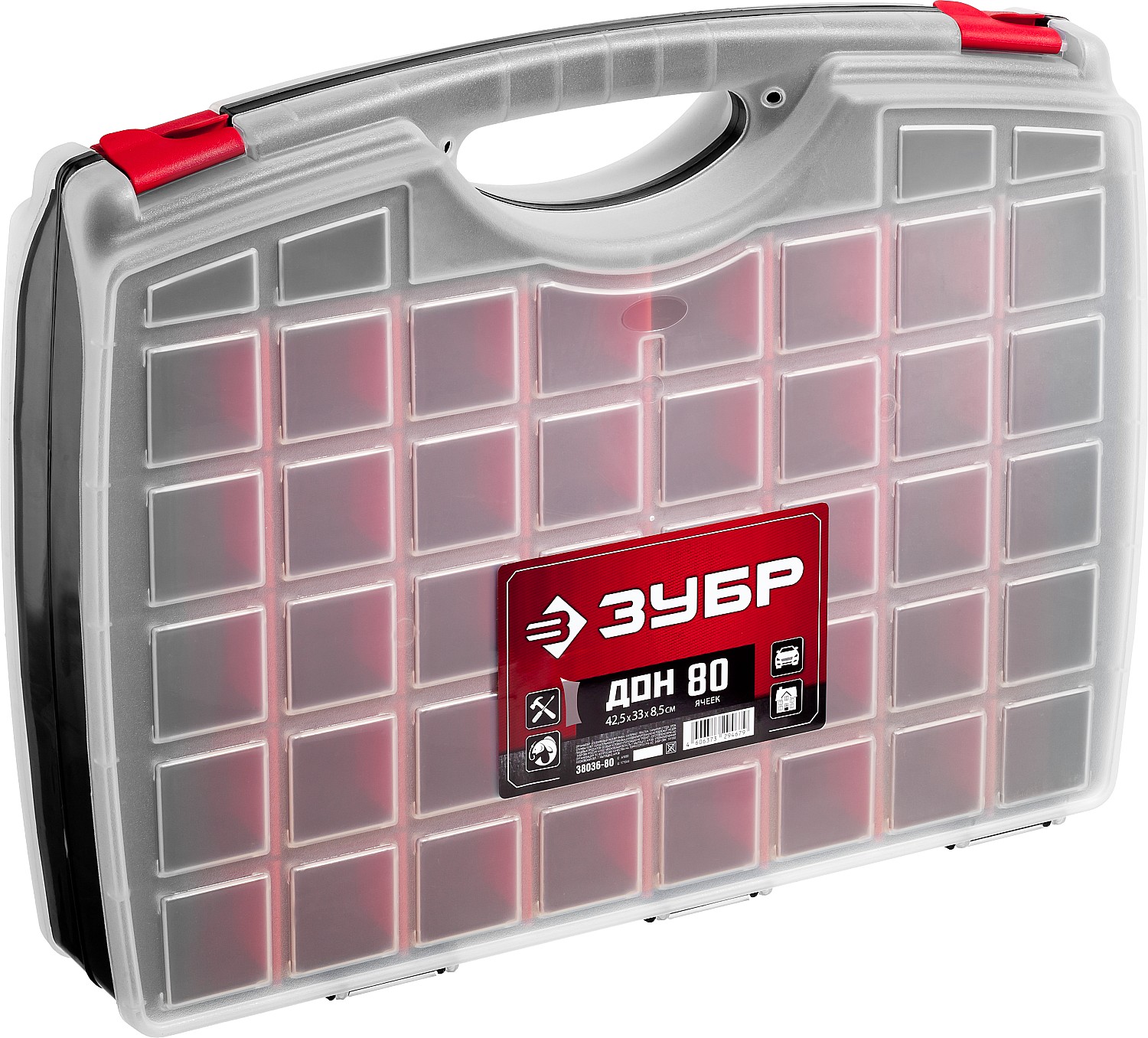 ЗУБР ДОН-80, 425 х 330 х 85 мм, двухсторонний органайзер с 80 ячейками (38036-80)