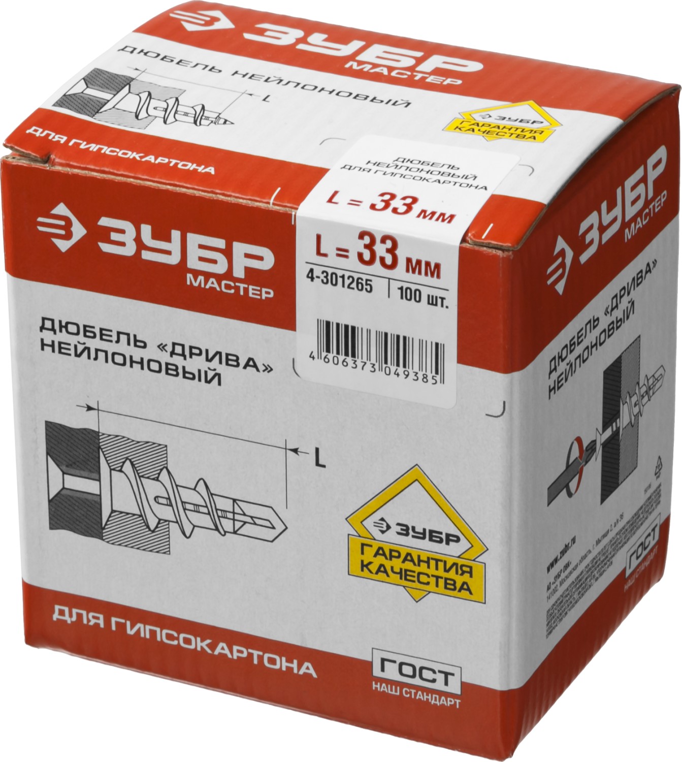 Дюбели ″ДРИВА″ для гипсокартона изготовлены из высококачественных материалов и используются для крепления различных элементов и конструкций к несущему основанию. Находят широкое применение в быту для крепления различных легковесных элементов и конструкций.