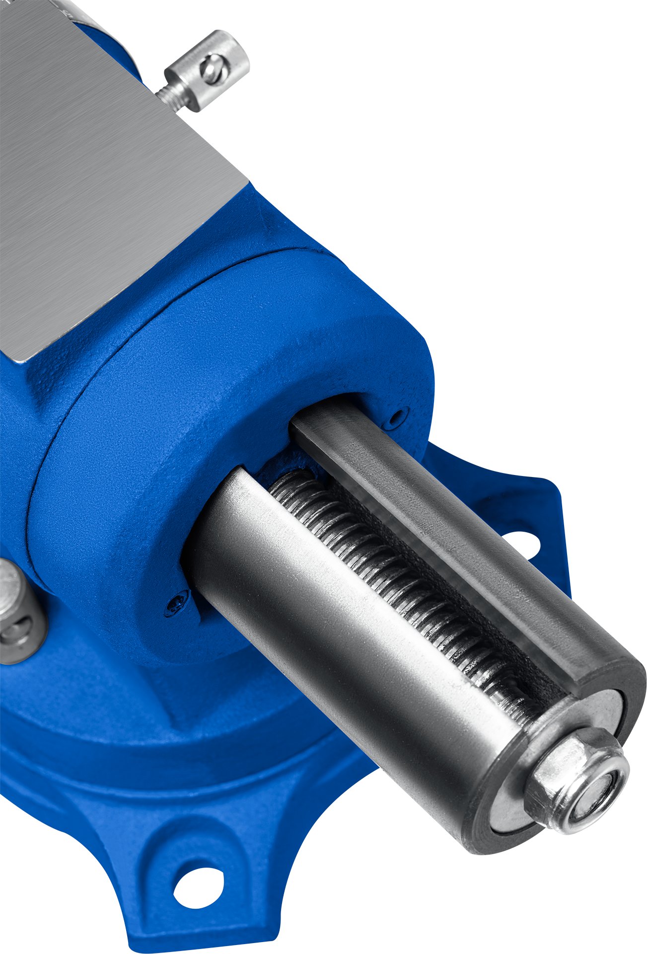 - Цилиндрическая форма и закрытый корпус тисков обеспечивают плавный ход подвижной планки, отсутствие люфта и защиту механизма от повреждений и загрязнений.